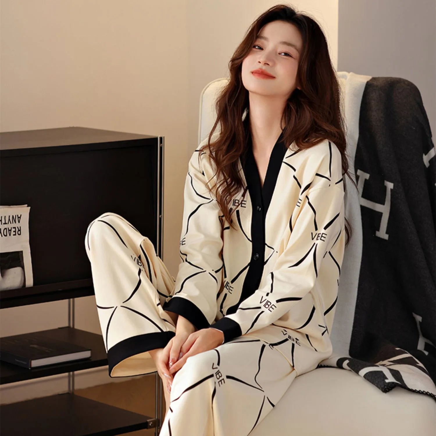 GETADME Women's New Pajamas Homewear Set of Spring and Autumn Pajamas Women Long-Sleeved Cardigan Ins Girls Cute Fall Pajamas Homewear