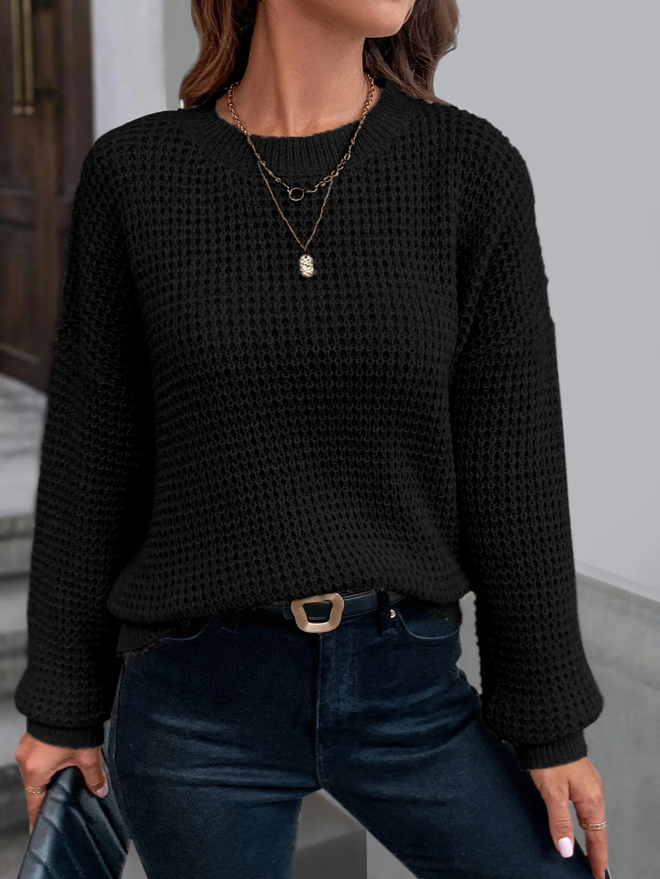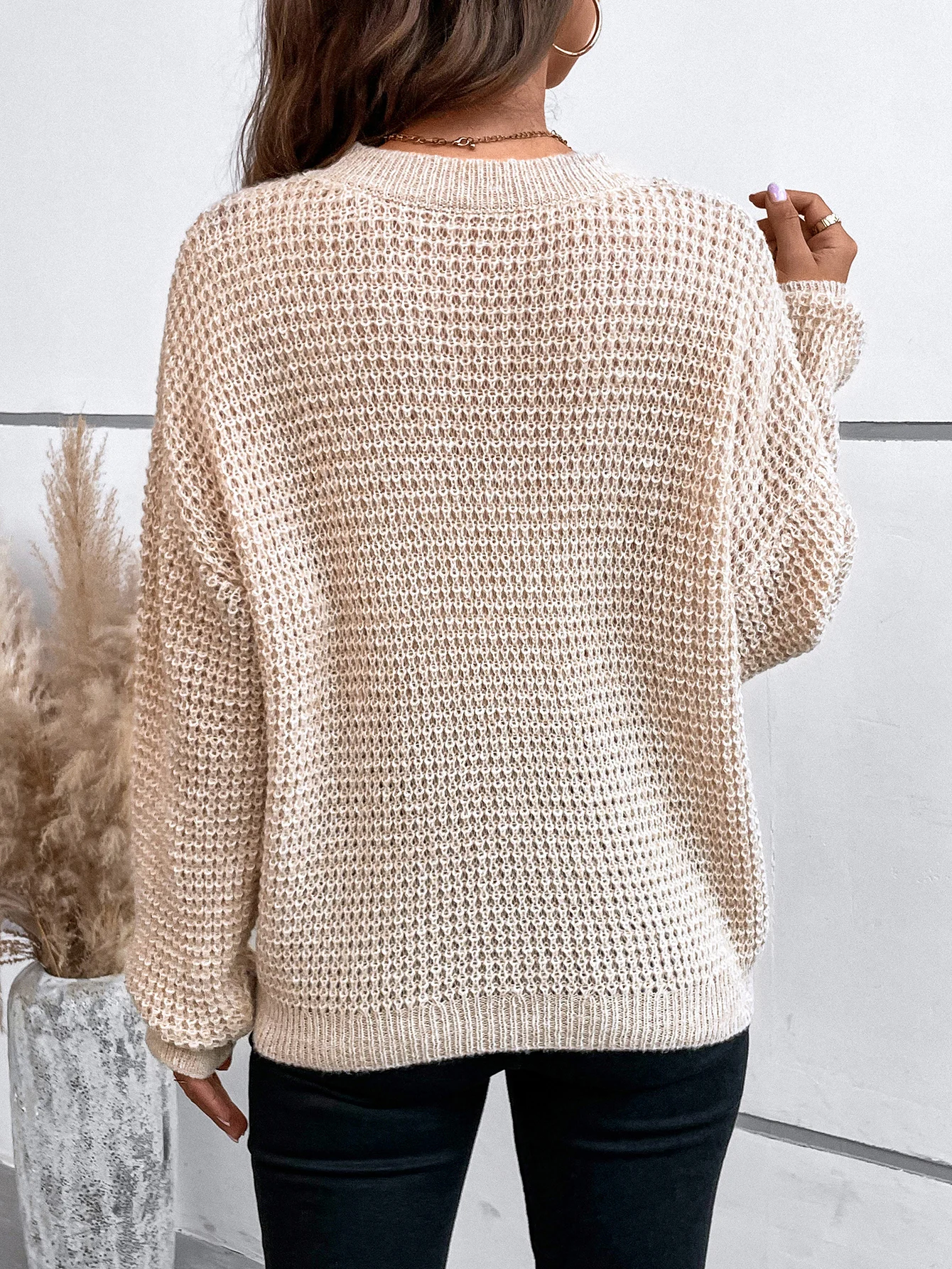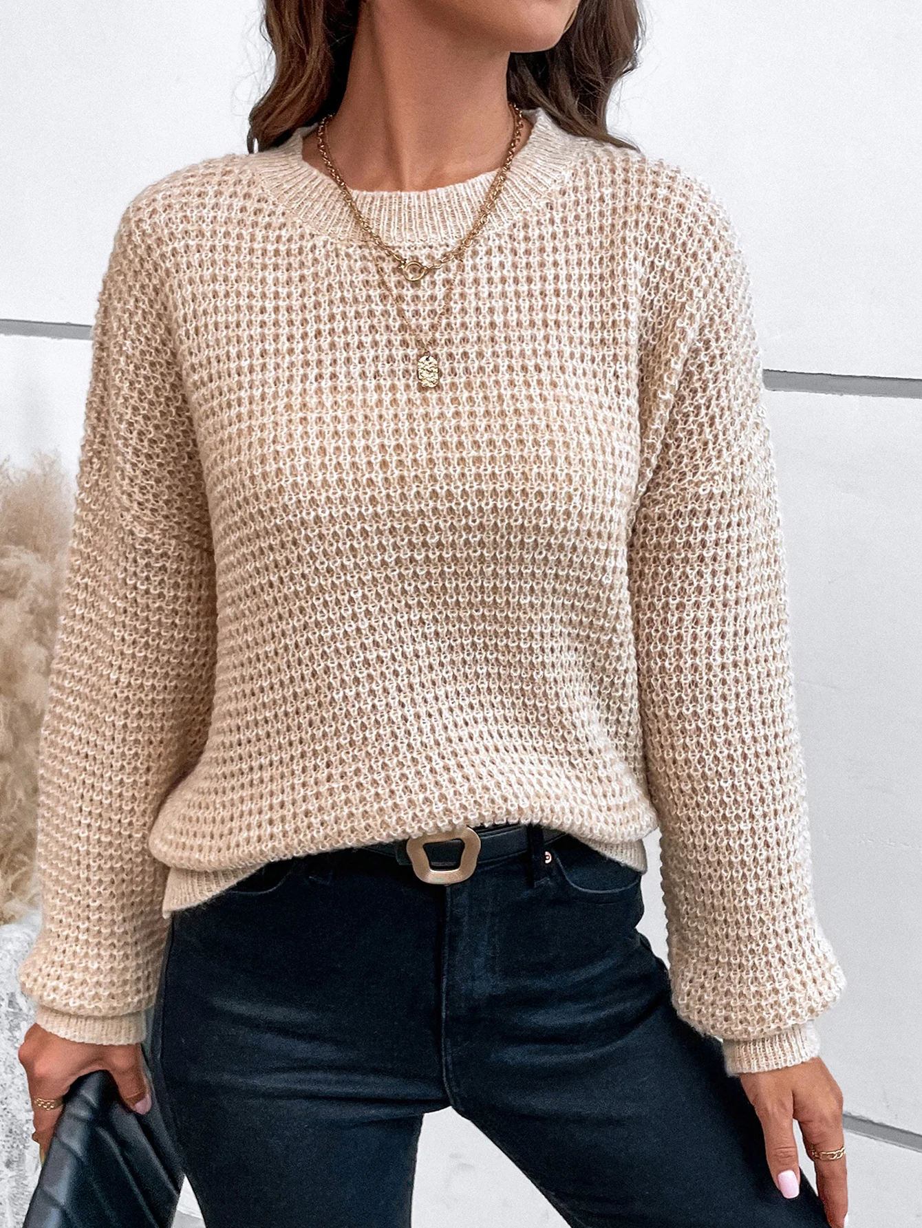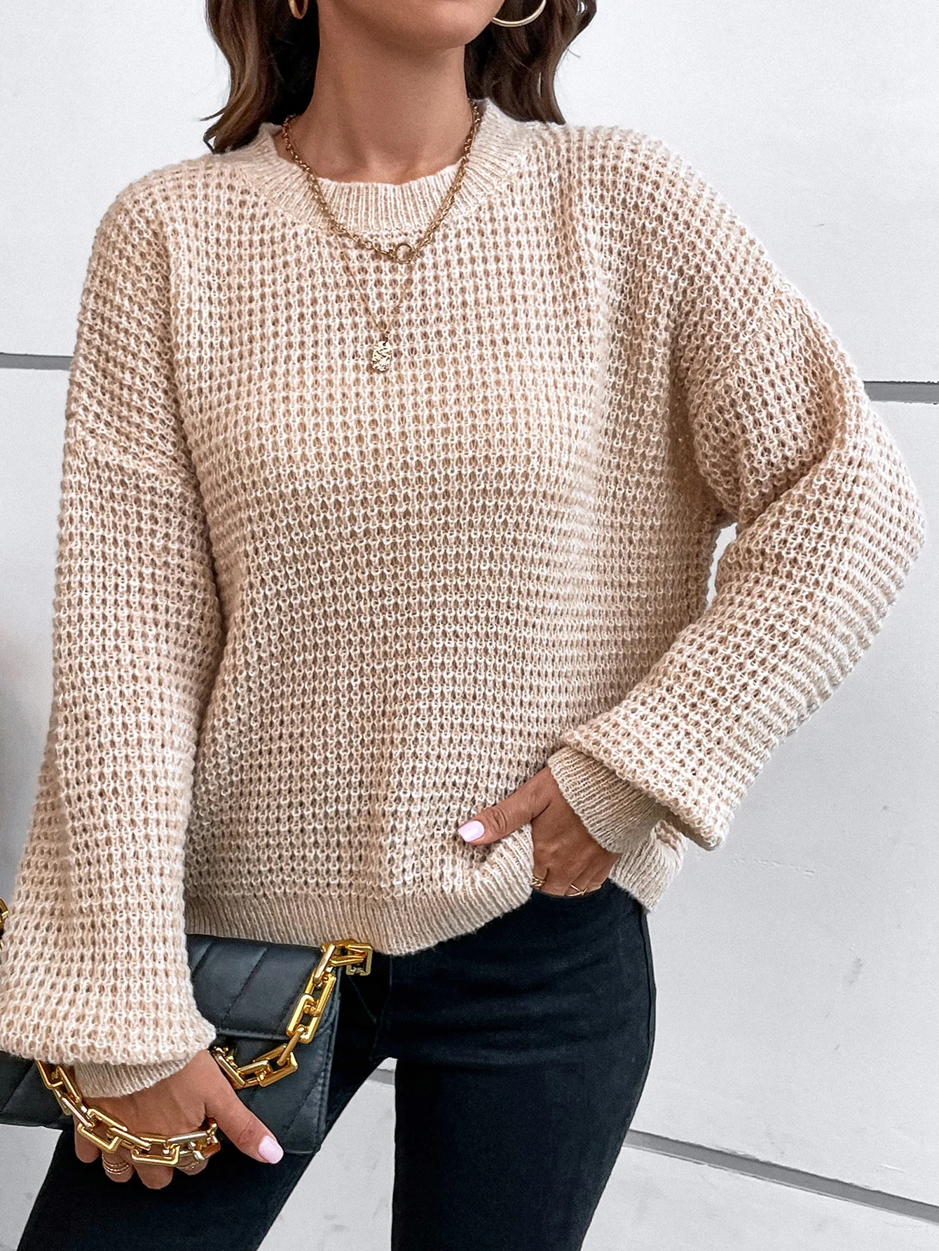 GETADME Women's sweater long sleeved solid color slant neck knitted top women's casual pullover loose street wear autumn and winter