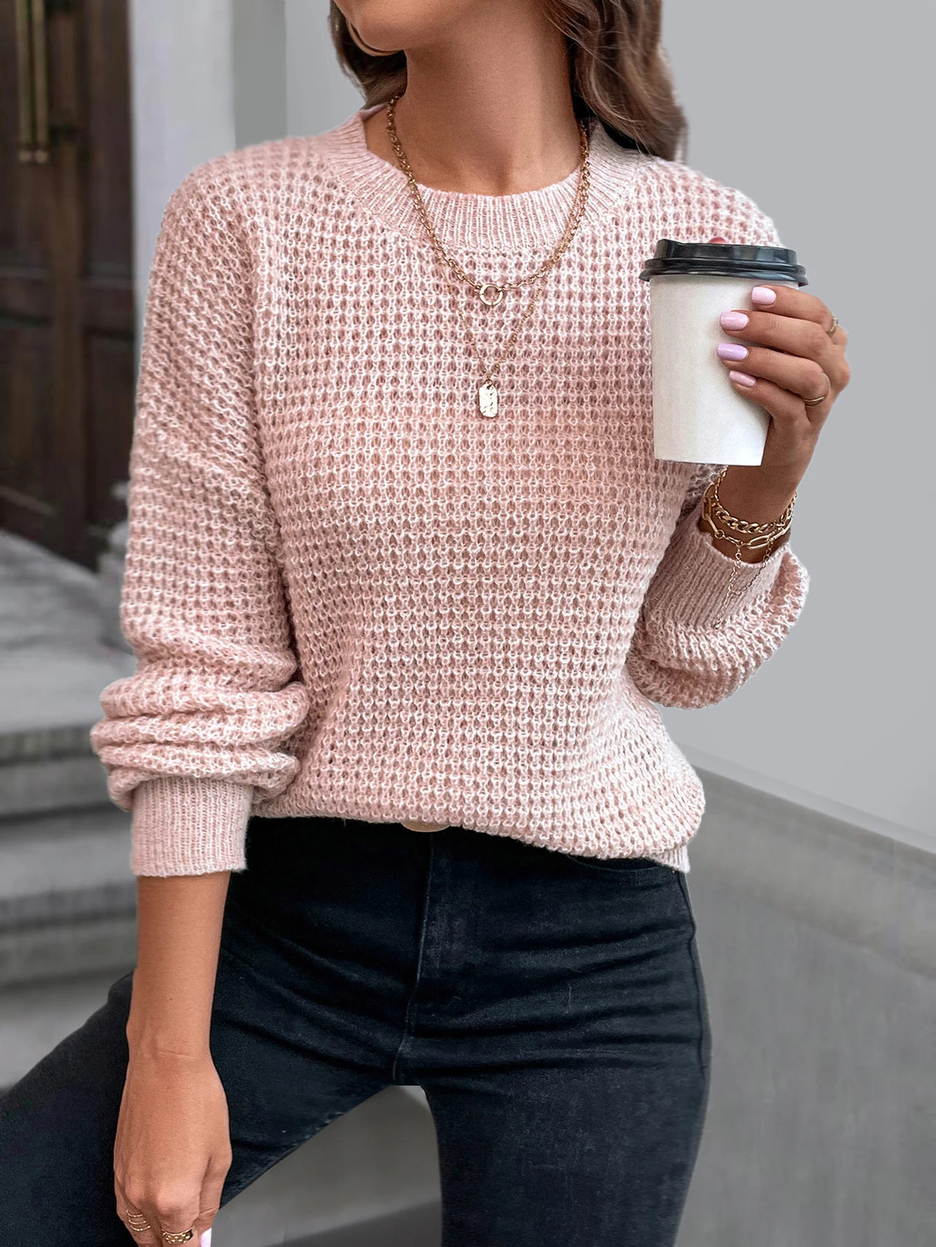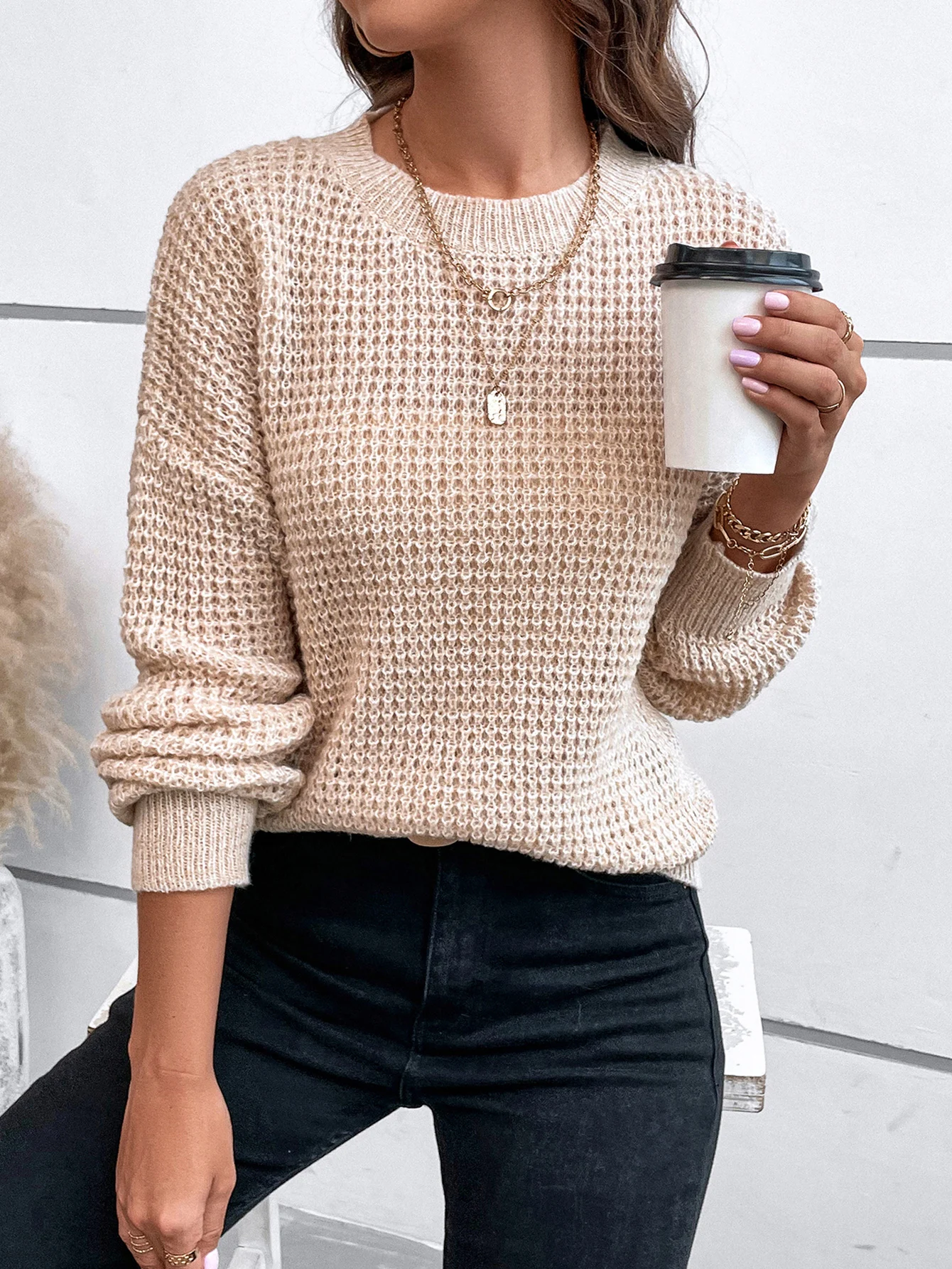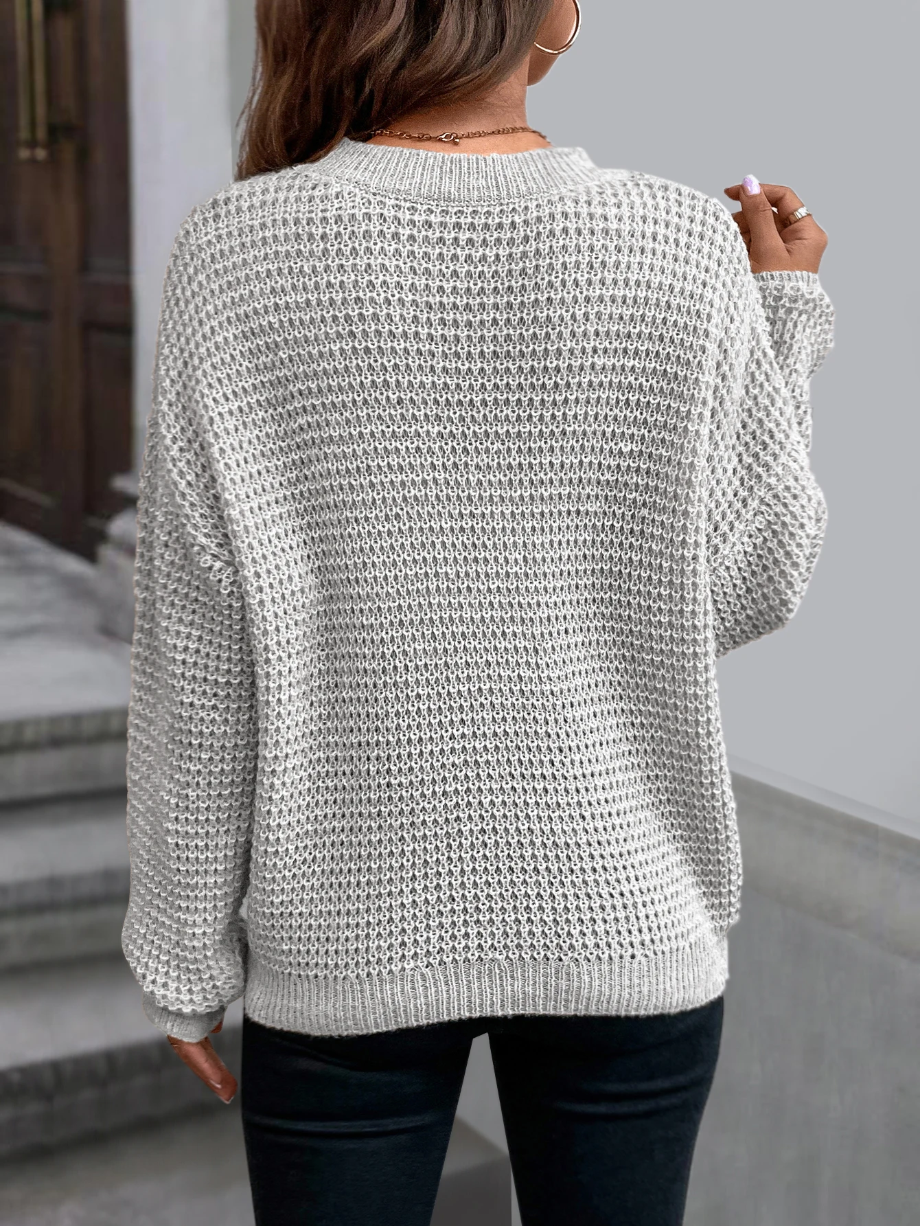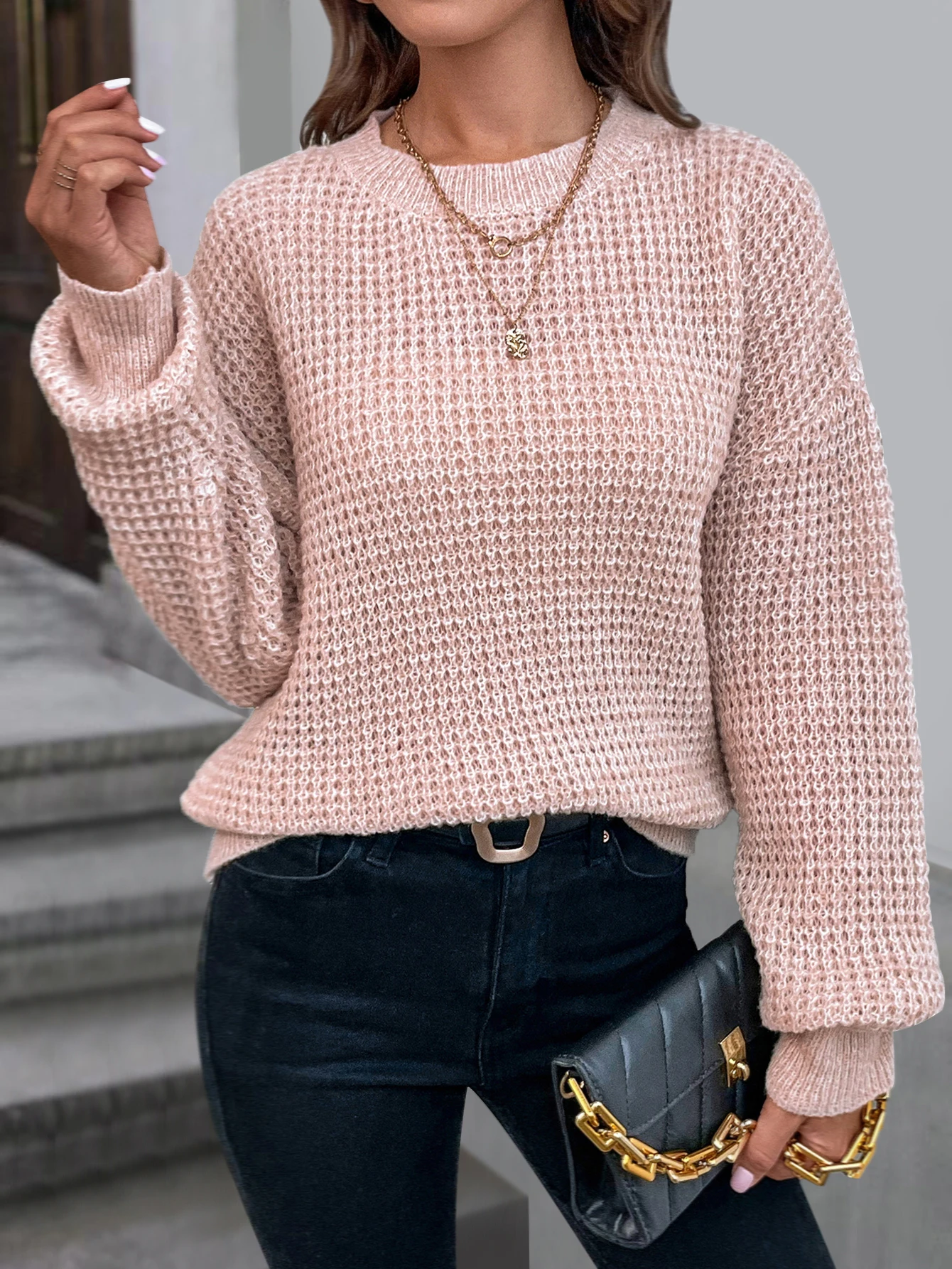 GETADME Women's sweater long sleeved solid color slant neck knitted top women's casual pullover loose street wear autumn and winter
