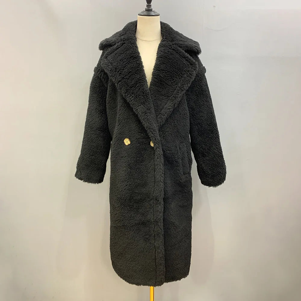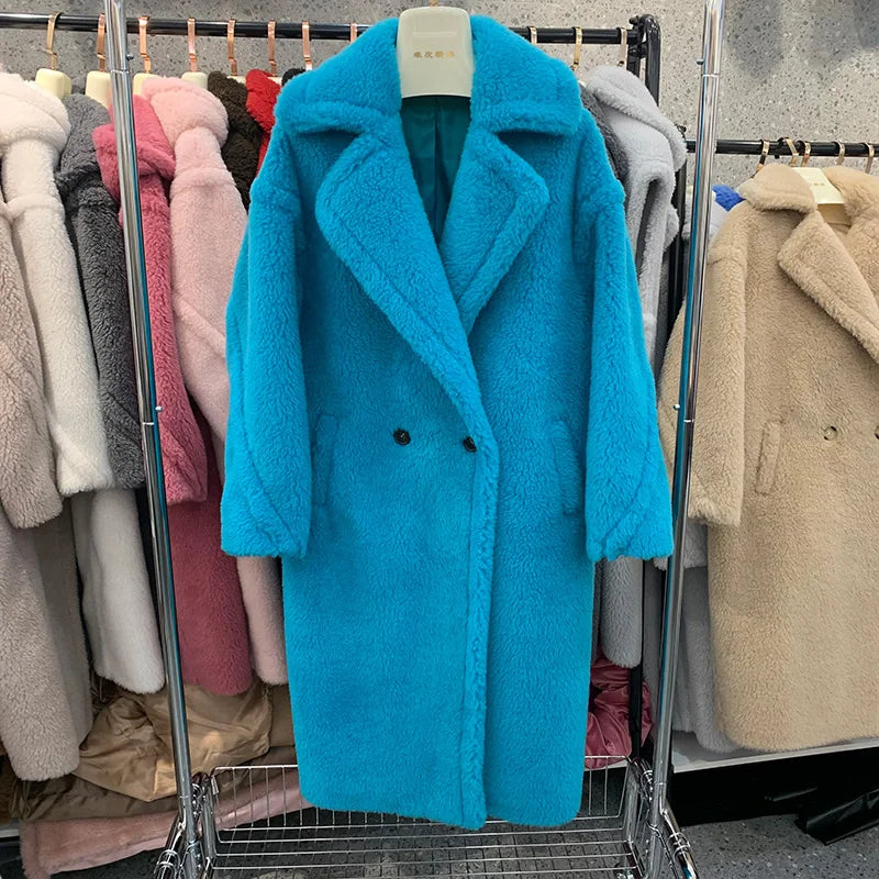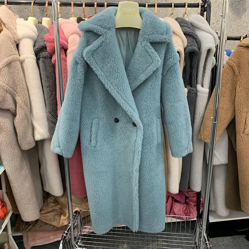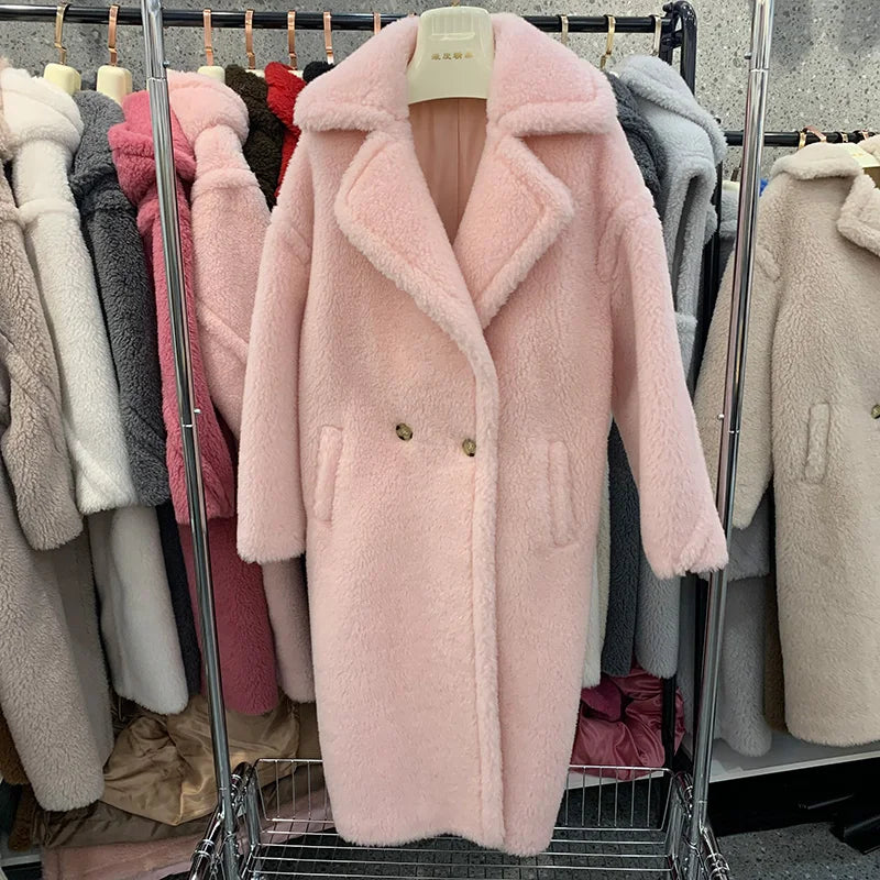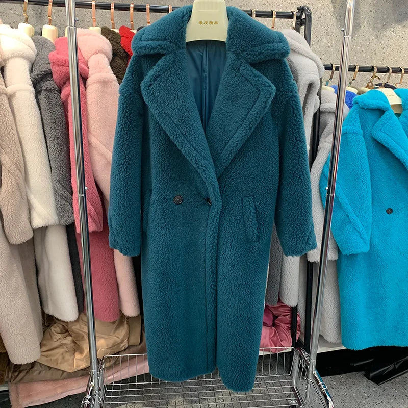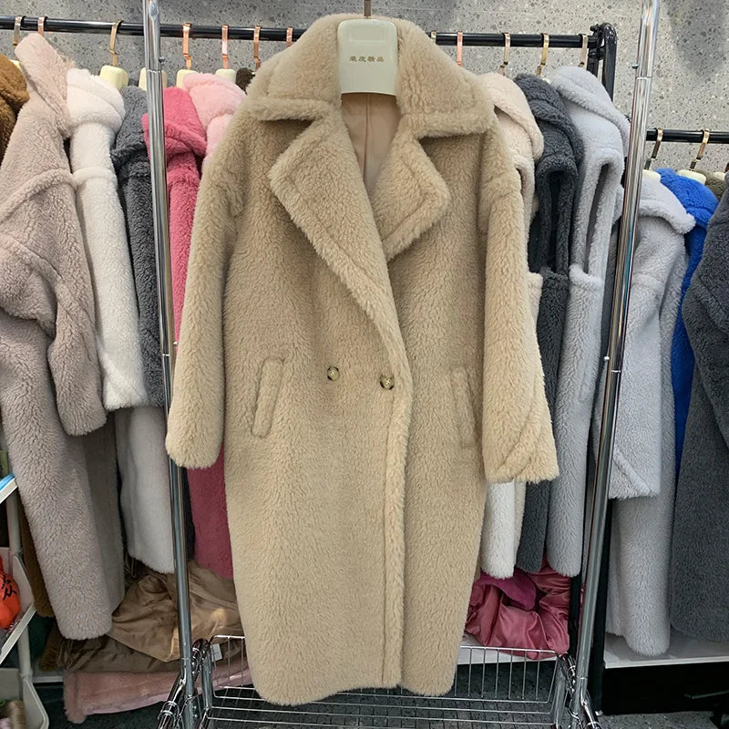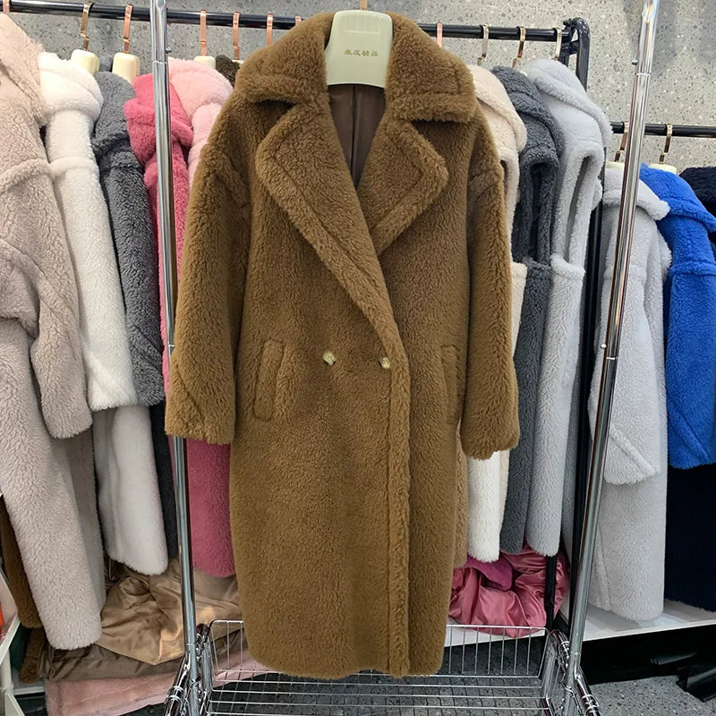 GETADME Women's Thick Warm Teddy Coats, Real Wool Long Coats, Lady Luxury Outerwear, Natural Fur, S7480A, Winter, 2025