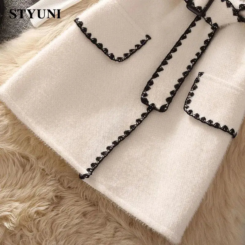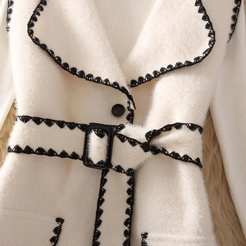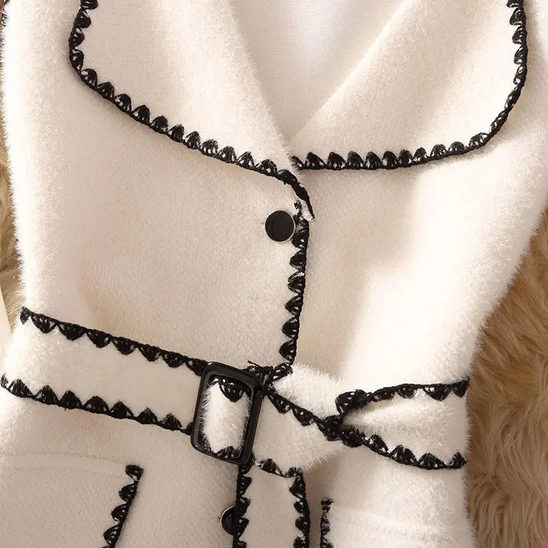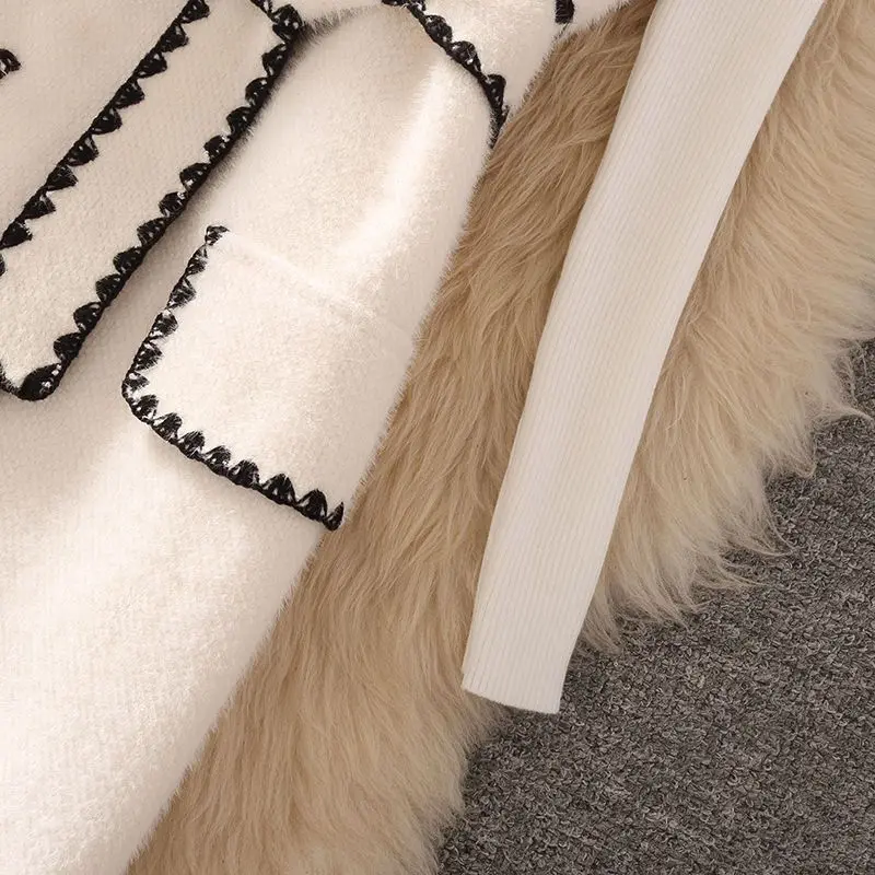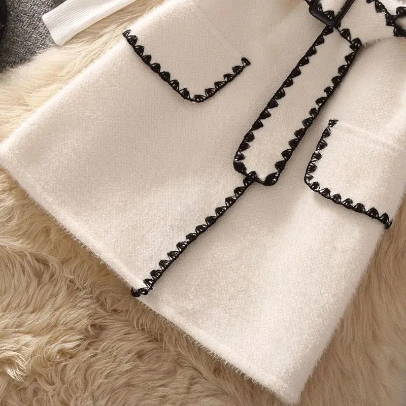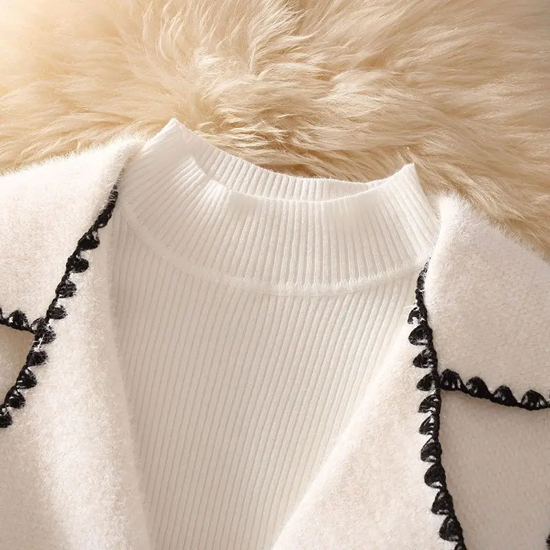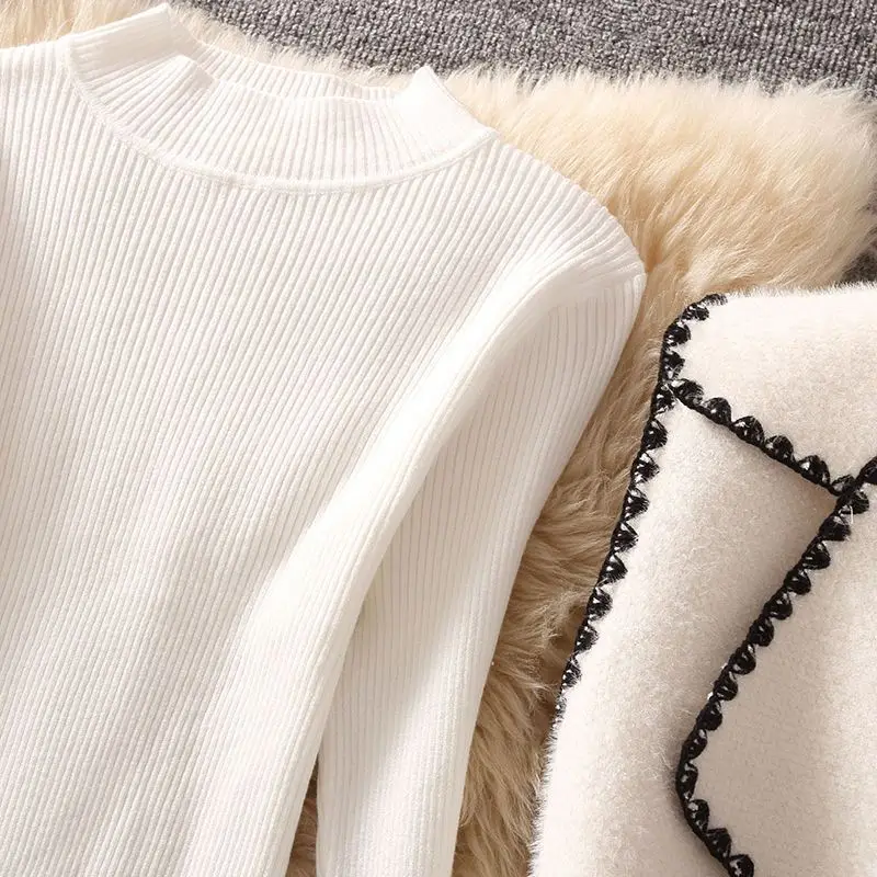 GETADME Woolen Vintage Turn-Down Collar High Waist With Belt Dresses Knitted Sweaters Pullover Two-piece Set Womens Dress Suit 2025