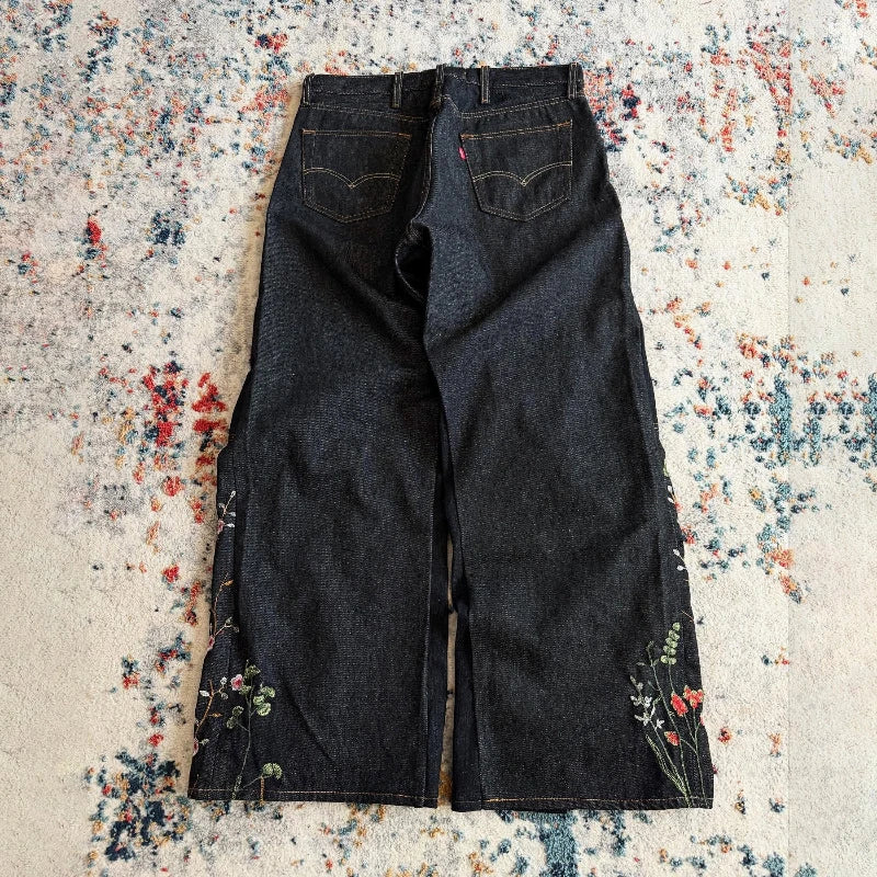 Y2K Blossom Baggy Jeans Trendy Floral Embroidery Streamlined Seams Unisex Streetwear Retro Harajuku Style Oversized Fit Pants