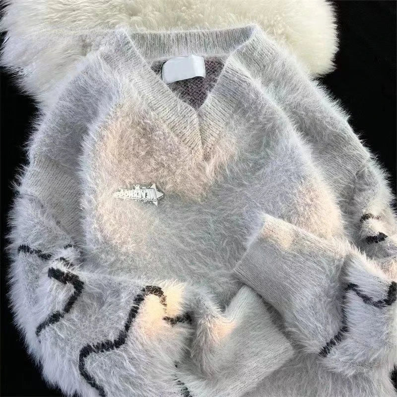 GETADME Y2K Fashion New Detachable Star Sweater Street Trend For Men And Women Harajuku Lazy Wind V-neck Casual Loose Pullover Sweater