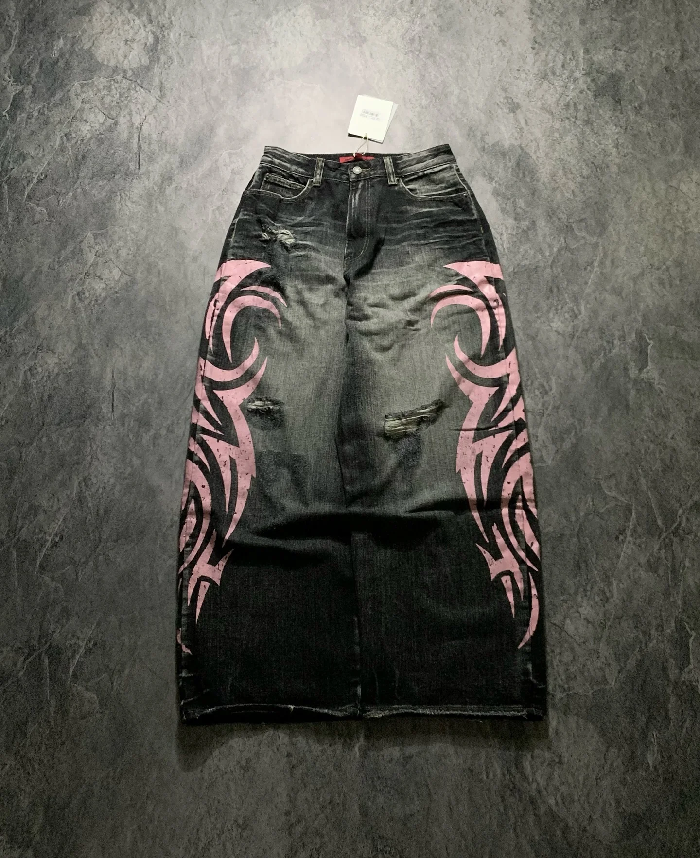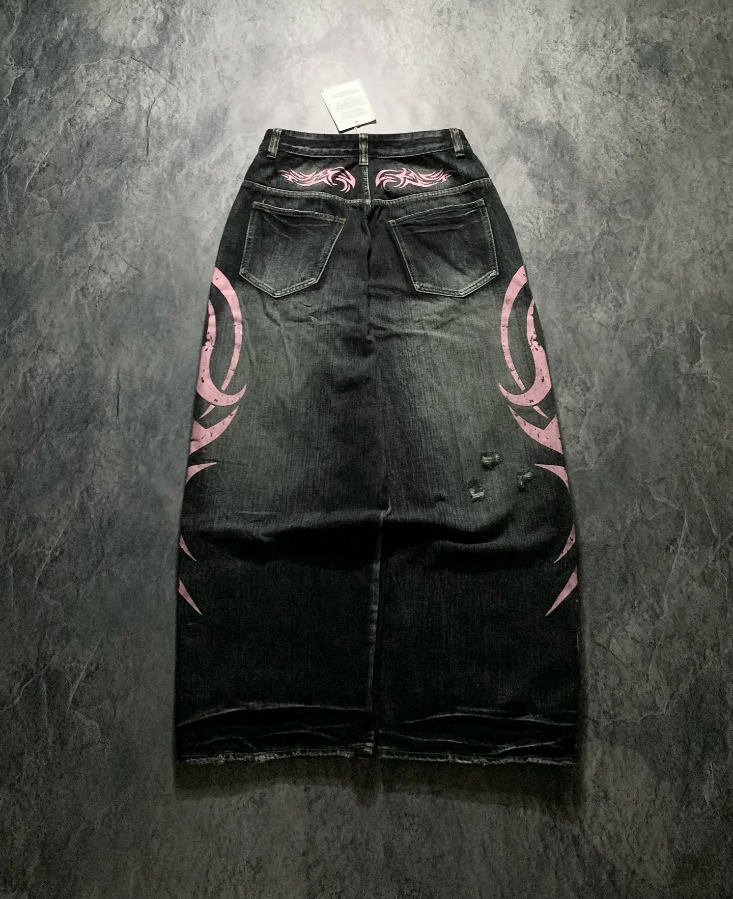 GETADME Y2K Graffiti Gothic Jeans Loose Punk Print Jeans Retro Street Street Hip Hop Straight Pants High Street Harajuku Couple Pants