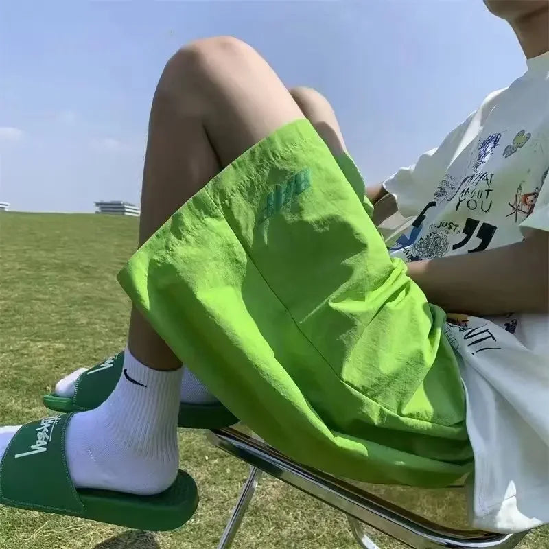 GETADME Y2k Men's Shorts Man Fluorescent Green Beach Pants Summer New Loose Quick-Dry Cotton Sports Gym Cargo Shorts Hip Hop Streetwear