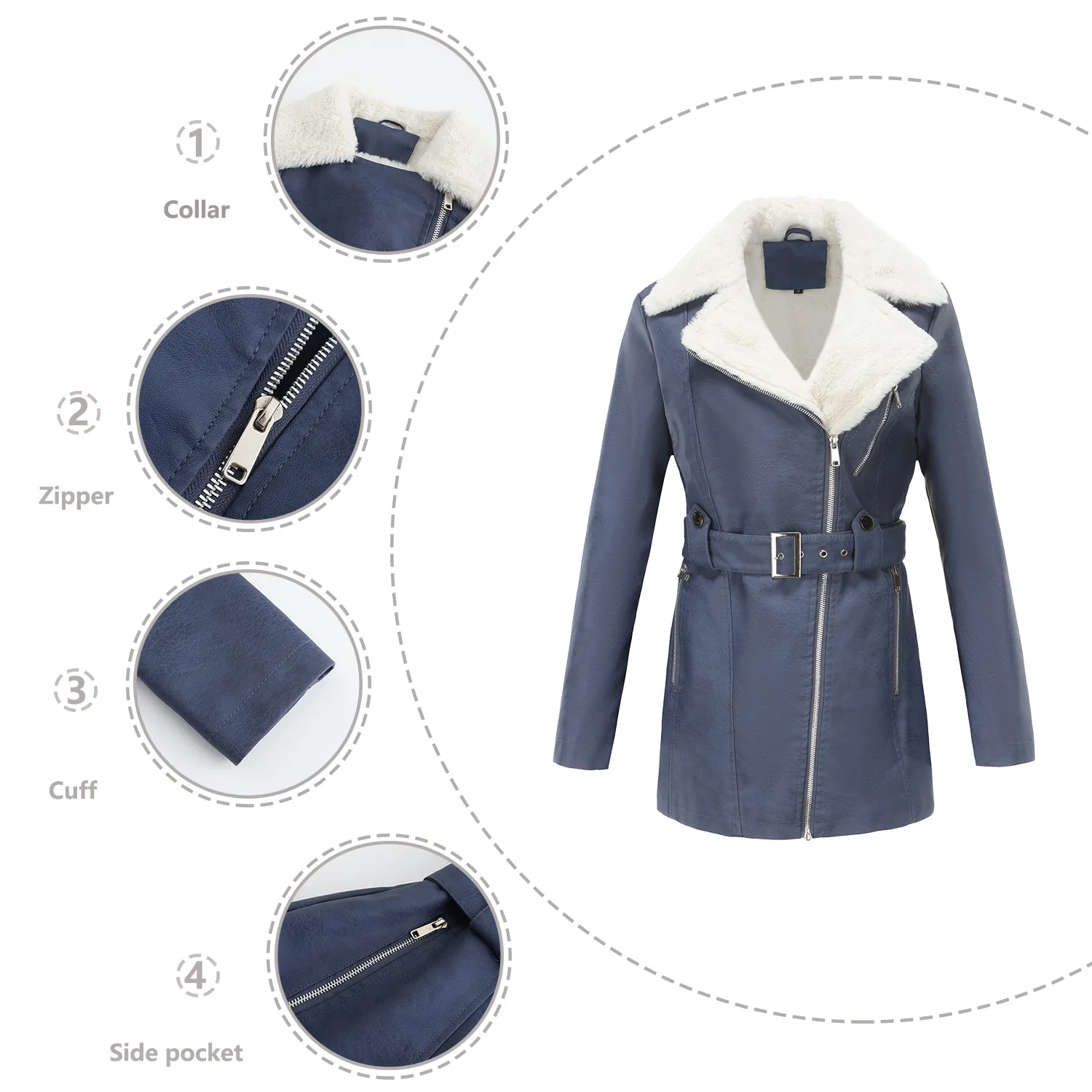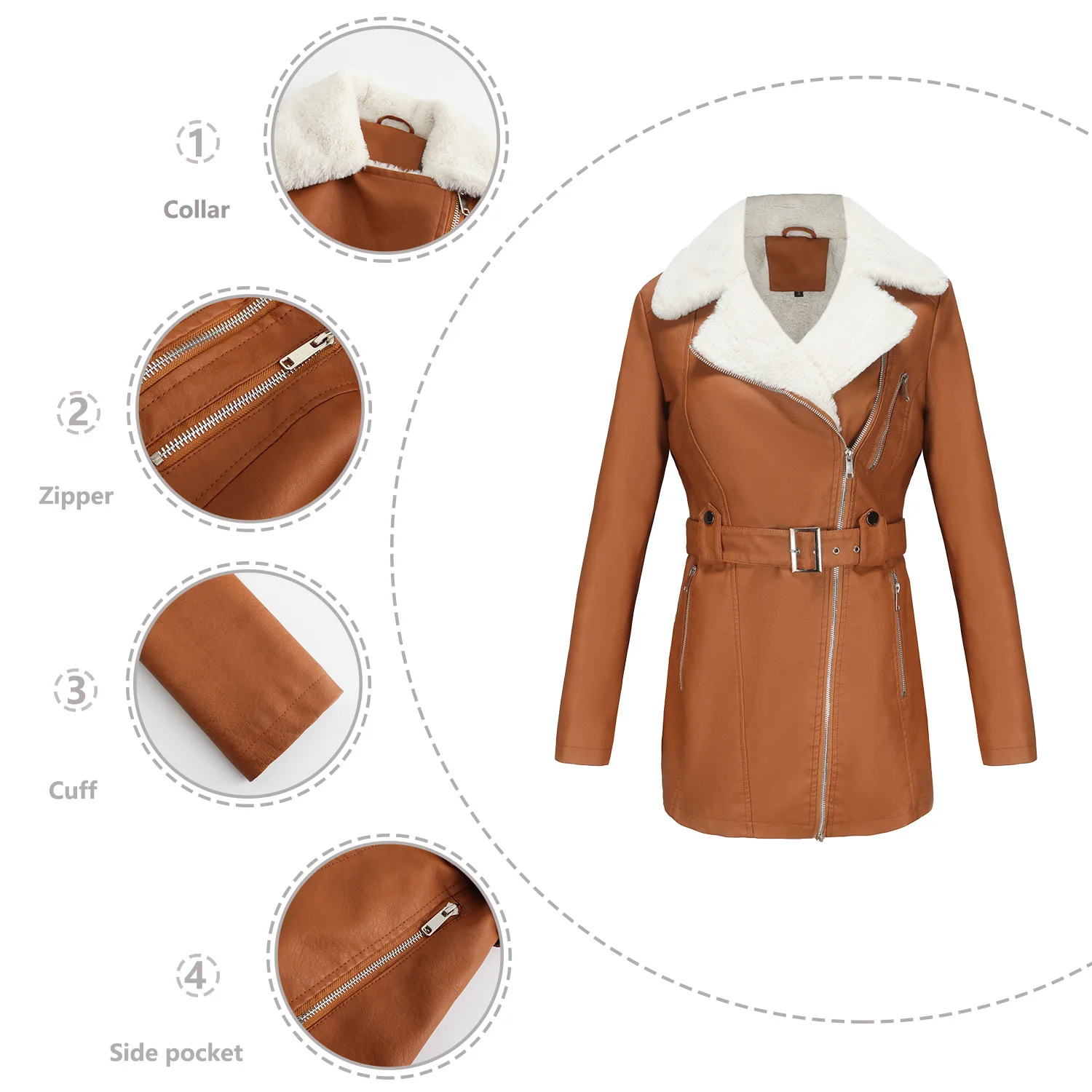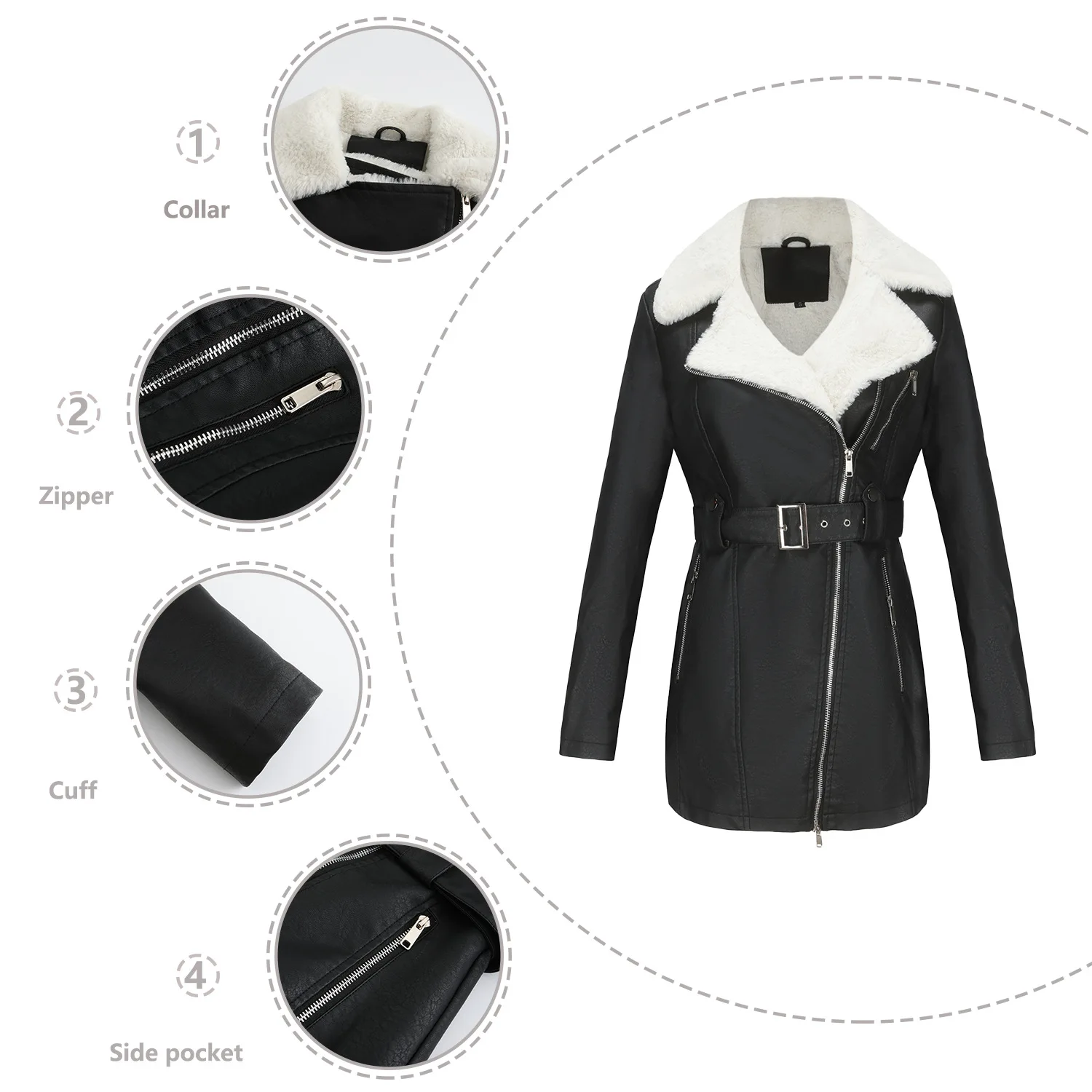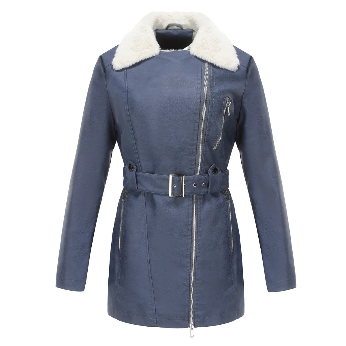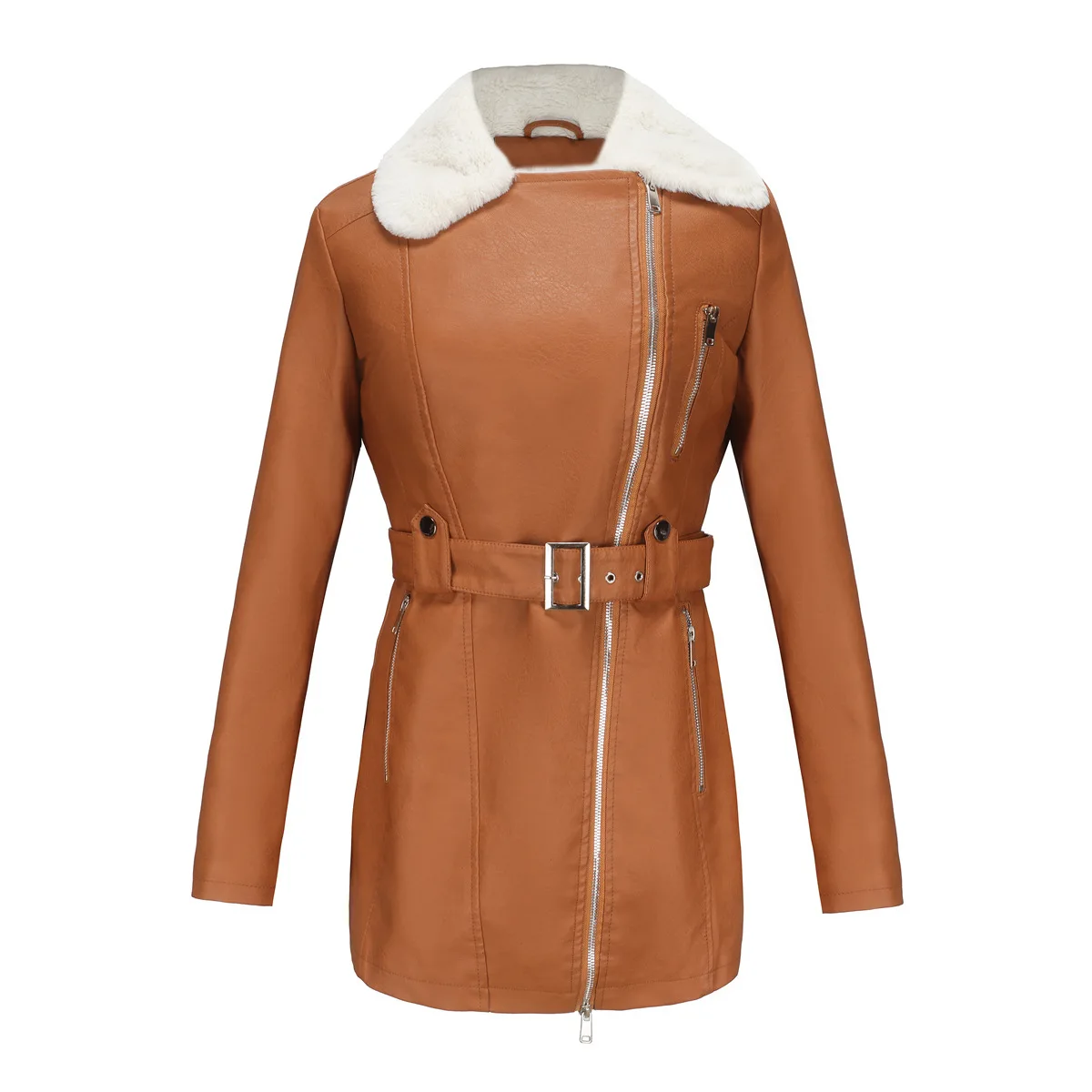 GETADME YJKDYK 2025 New Autumn Winter Women's Jacket Velvet Leather Jacket For Women Double Headed Zipper Waistband Warm Jacket