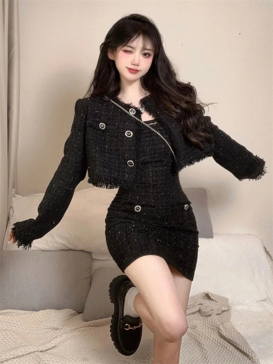High-end Style Women's Suit Skirt Set Fashion Spring and Autumn Design Sense Slim-fit Short Jacket Top Sling Dress Two-piece Set