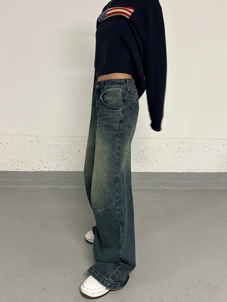 Getadme Vintage Baggy Jeans Wide Women Grunge Oversized American Retro High Waist Denim Trousers Female Streetwear Cowboy Pants