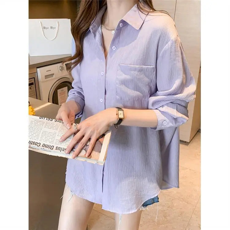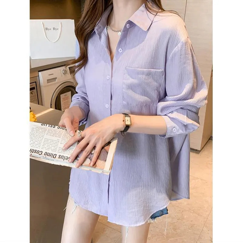 Ice Silk White Sunscreen Shirt Women's Long Sleeved 2023 Summer New Versatile Cardigan Thin Coat Simplicity Fashion Clothing