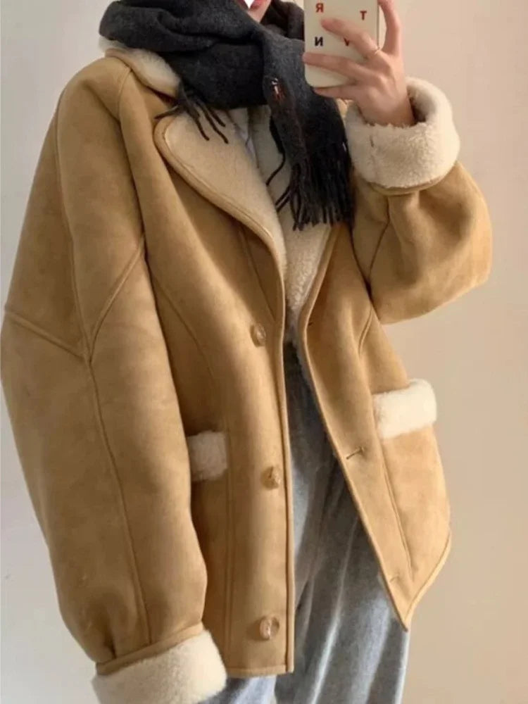 Getadme Korean Jacket Women Autumn/Winter Coat for Women Clothing Solid Polo Collar Single Breasted Thickened Short Coat New Outerwear