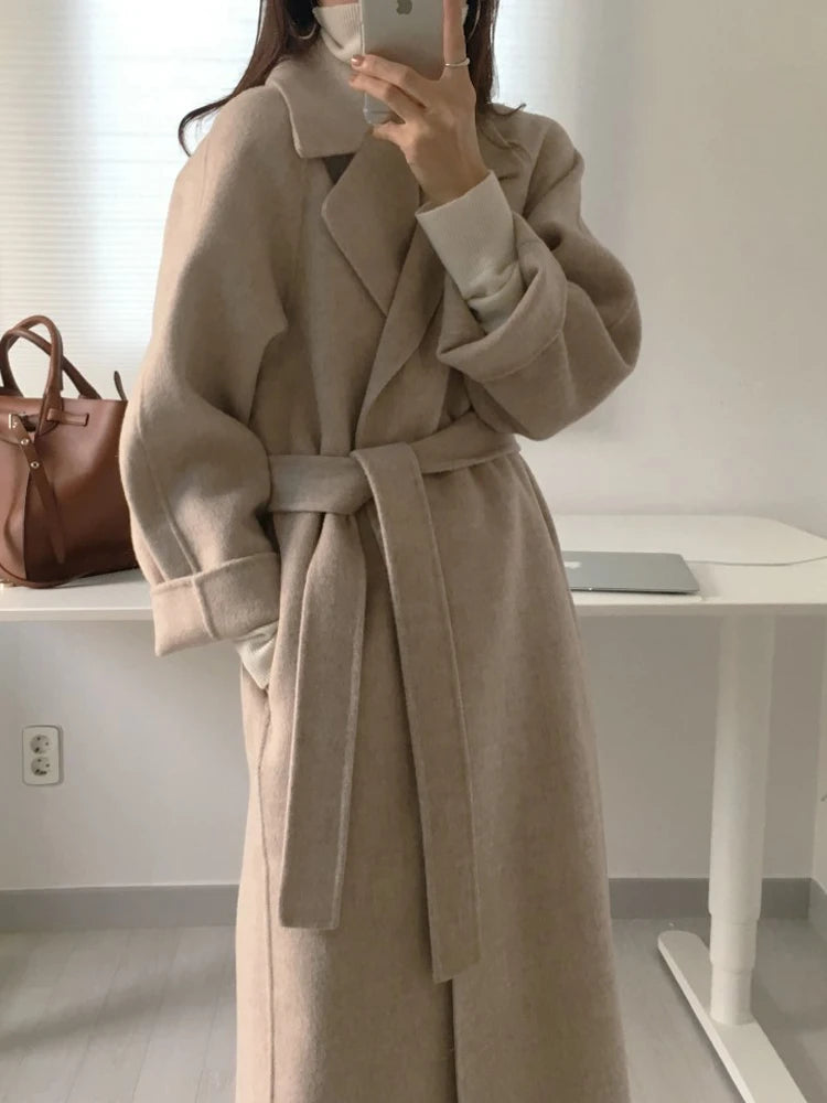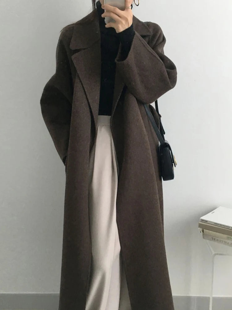 Getadme Long Woolen Coat Women Autumn Winter Warm Overcoat Female Elegant Fashion Lace-Up Outerwear Ladies Casual Loose Chic Coats