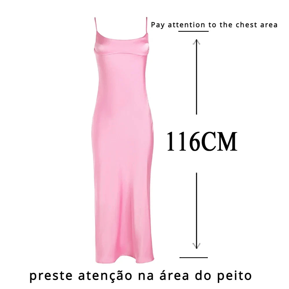 Pink Camis Satin Long Dresses Elegant Sleeveless Slip Holiday Party Dresses Sexy Casual Backless Summer Dresses Women