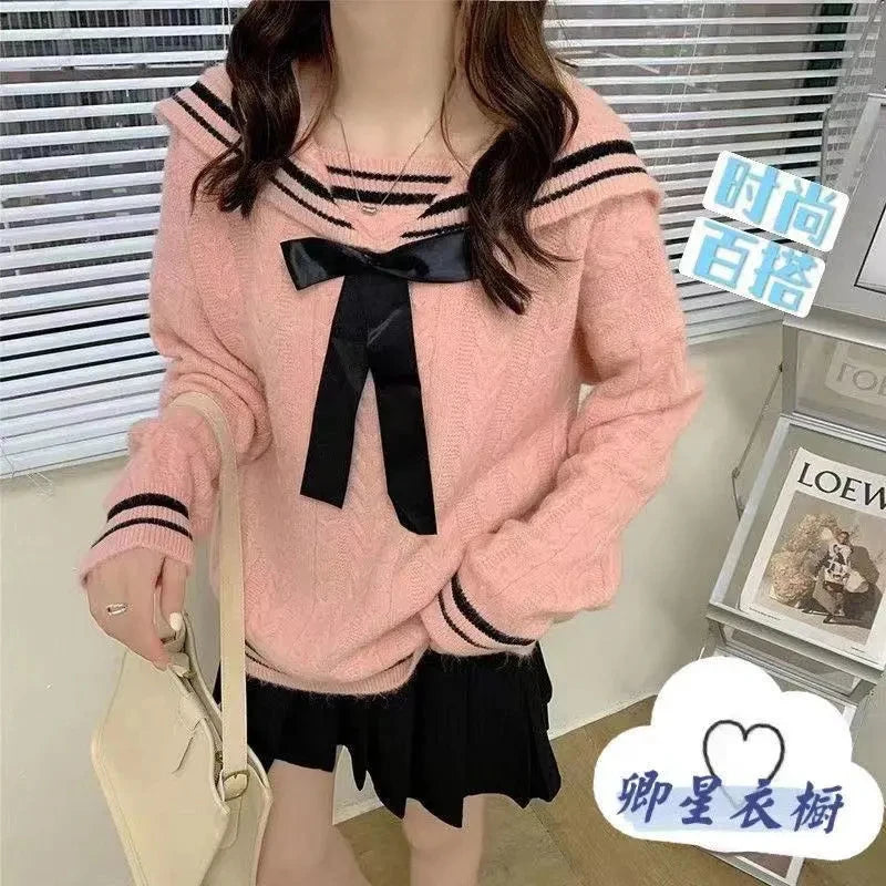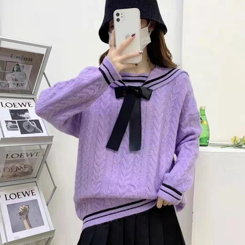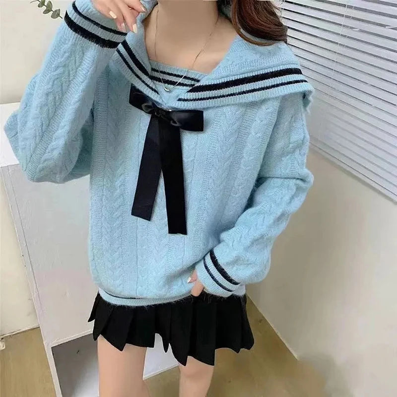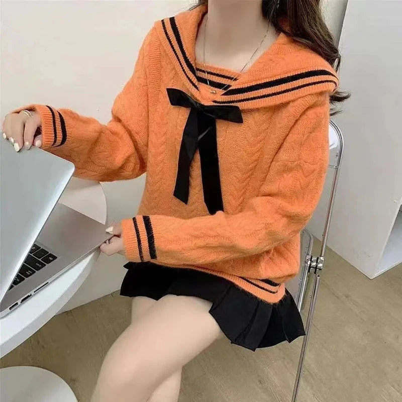 Plus Size 4xl Preppy Style Sailor Collar Pullover Sweater Women Simple Twist Hit Color Women Sweater New Loose Knitted Sweaters