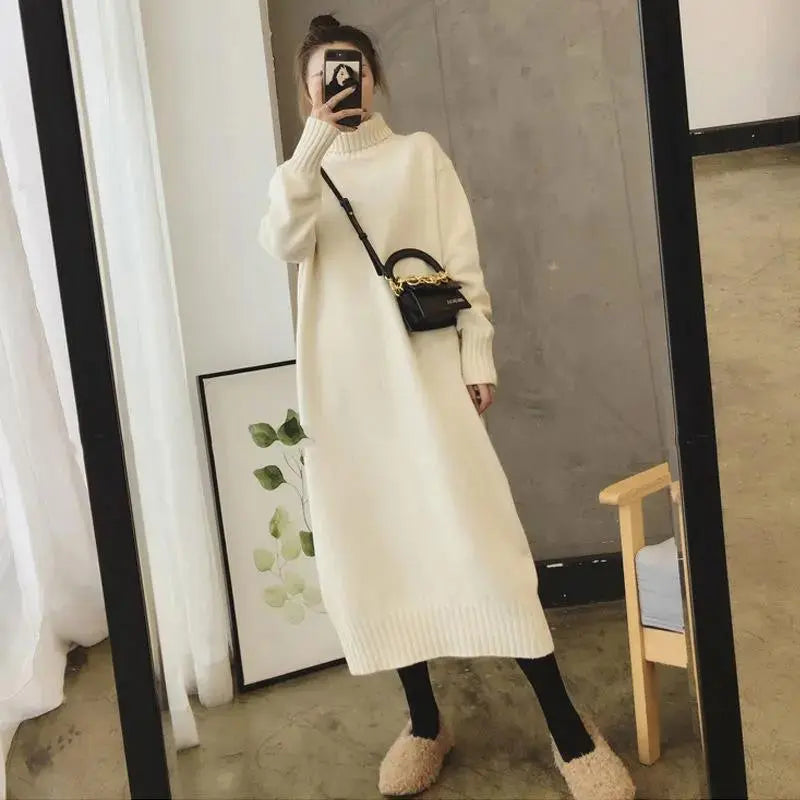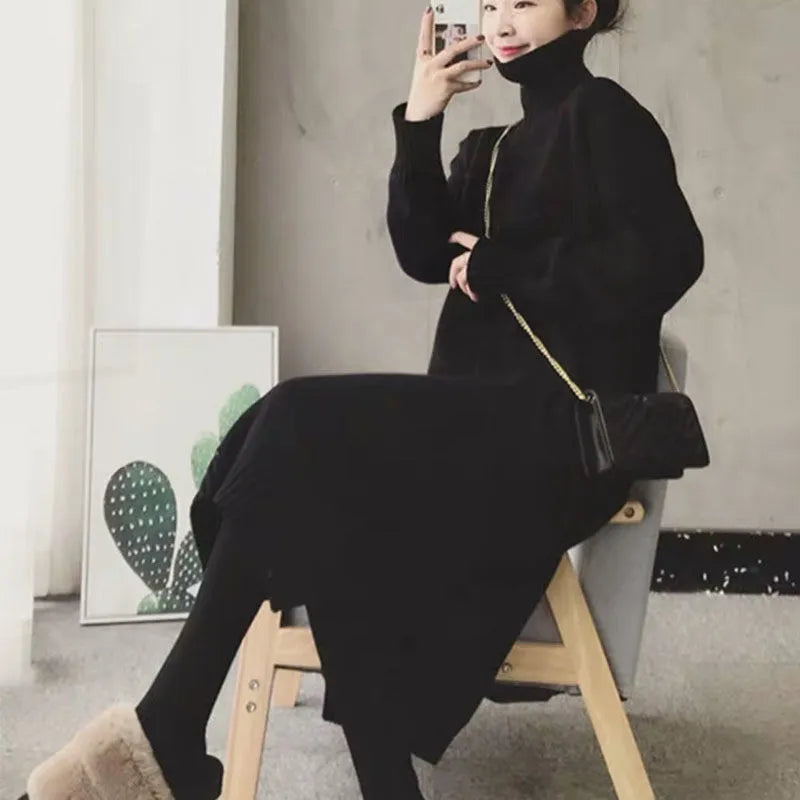 Robe Black Female Dress Clothing Crochet Evening Loose Turtleneck Knit Maxi Women's Dresses Long White Autumn and Winter Sleeve
