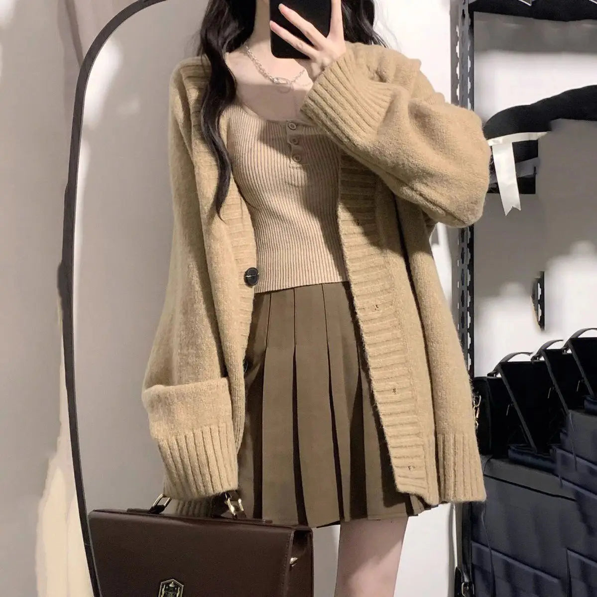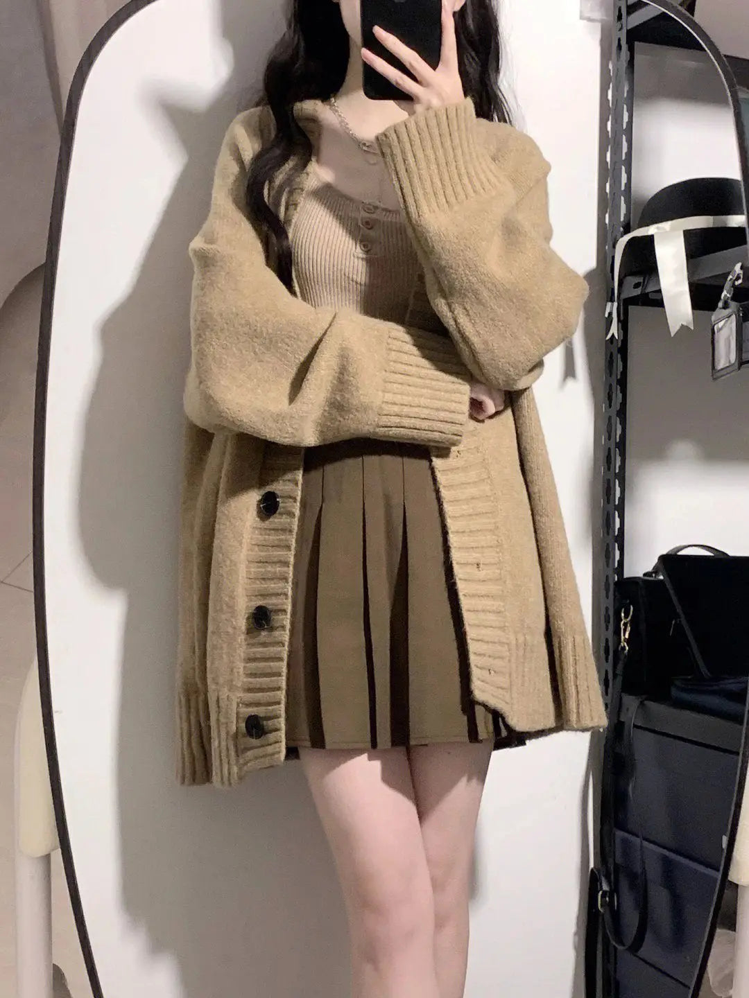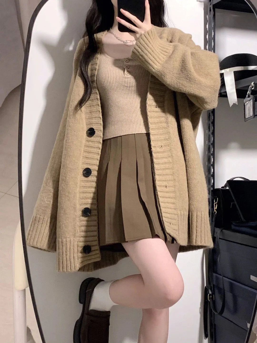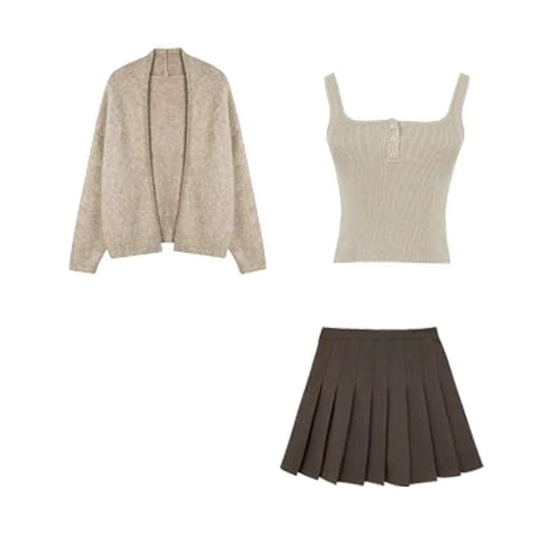 Getadme Suit women's autumn and winter new lazy knitting cardigan sweater coat suspender vest high waist slim pleated skirt