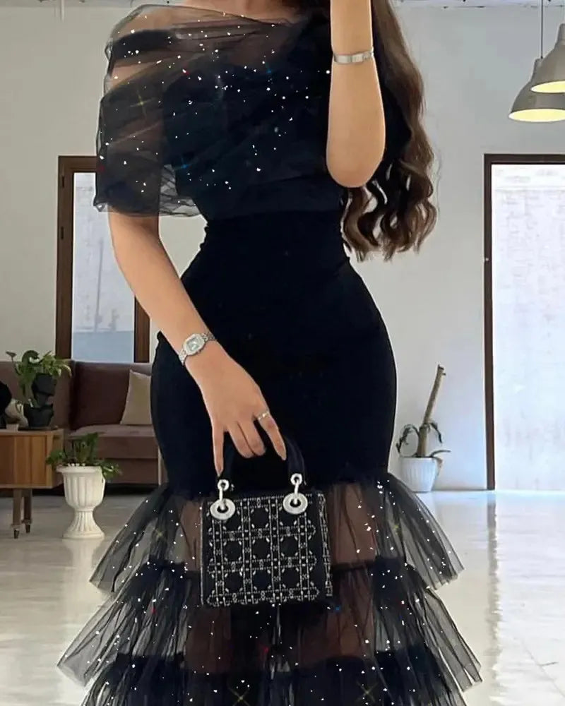 Summer Dress Sequin Temperament Commuter Maxi Dress Elegant Solid Color Dresses for Women Fashion Black Cake Dress Evening Dress