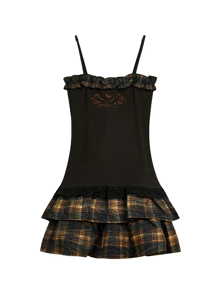 Summer Harajuku Gothic Club Evening Prom Gown Mini Dress 2000s Aesthetic Party Women Plaid Patchwork Frocks One-Piece Gyaru Y2k