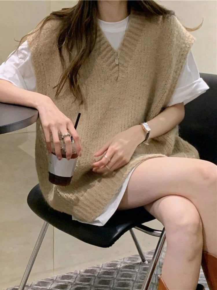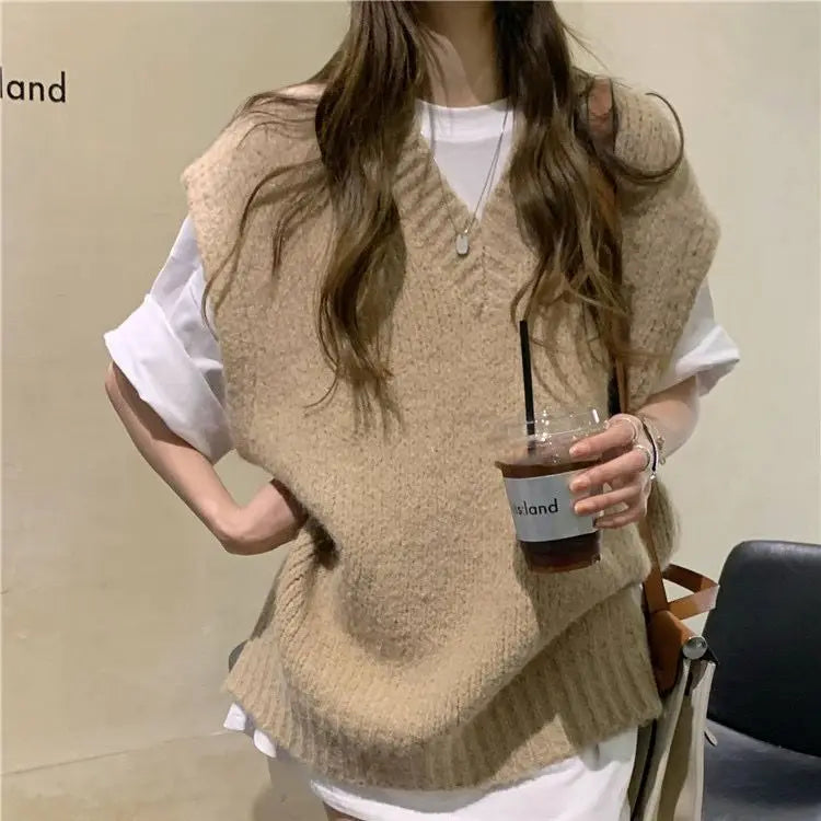 Sweater Vests Women Knitted Korean Style Casual Lazy Ladies Temperament Solid All-match Fashion Classic Ulzzang Spring Vintage