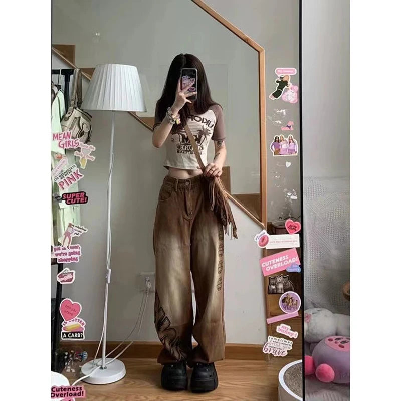 Vintage Streetwear Denim Trousers Female Egirl Hip Hop Low Rise Fairy Grunge Baggy Jeans Women Straight Gothic Pants Clothes