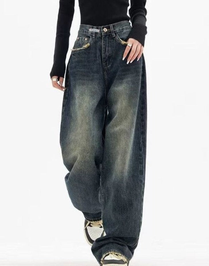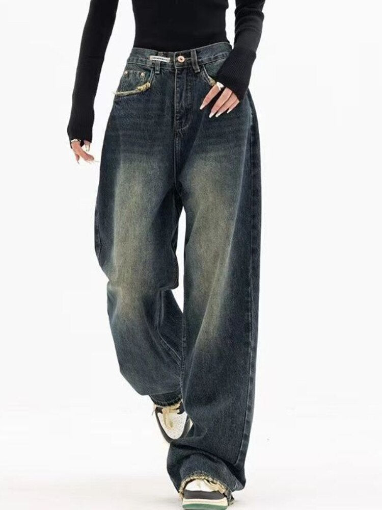 Getadme Wide Leg Jeans Women Elegant Casual Korean Fashion Style High Waist Daily Retro Washed Vintage Streeetwear Chic All-match Basic
