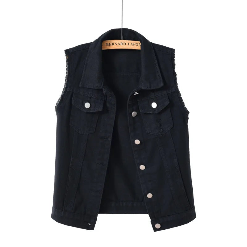 Women big size 6XL Denim Vest Sleeveless Waistcoat Students Casual Tops Jeans Jackets Red Pink Purple Yellow Blue White Jacket