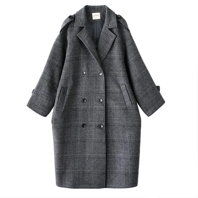 Women Coat Plaid Tweed Wool Warm Long Jackets Female Overcoat Korean Fashion Outerwear Trench Coat Clothes 2023 Autumn Winter