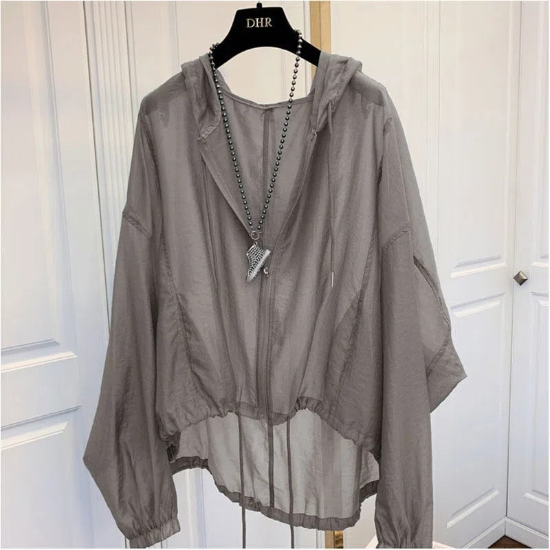 Women Jackets Hooded Summer Sun-proof Zipper Trench Coats Thin Loose See Through Outerwear Breathable Lightweight Clothes