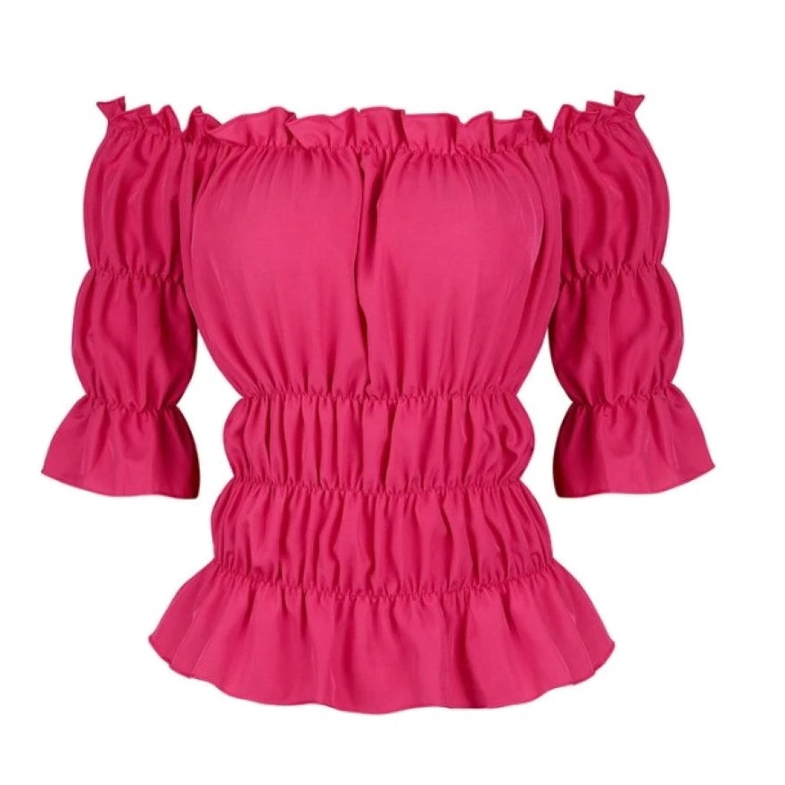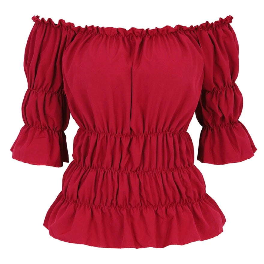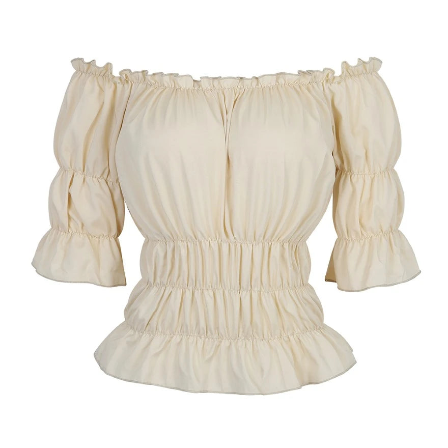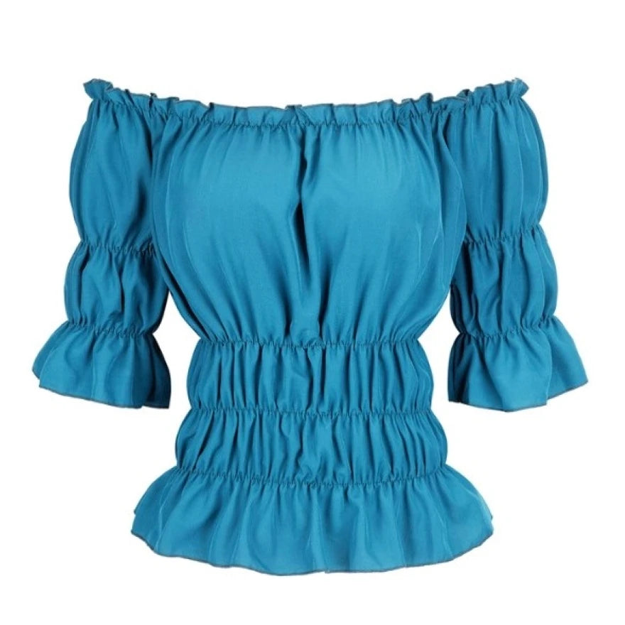 Women Medieval Renaissance Pirate Corset Blouse Off Shoulder Elastic Waist Steampunk Shirt Short Sleeves