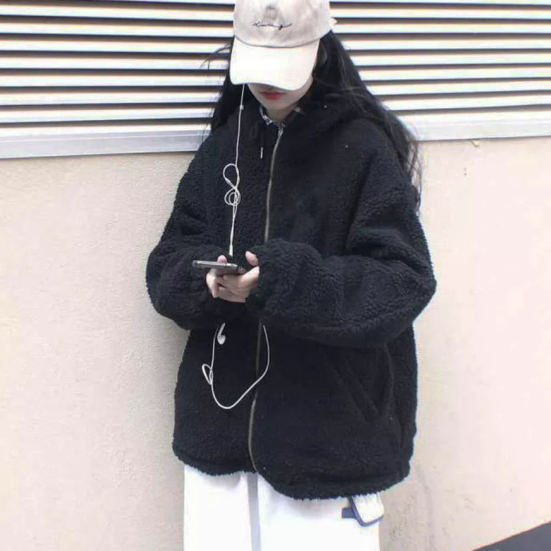 Women Oversized Parkas Hooded Thick Coat Ladies Soft Kawaii Jackets Double Sided Outerwear Autumn Winter Warm Long Sleeve Tops