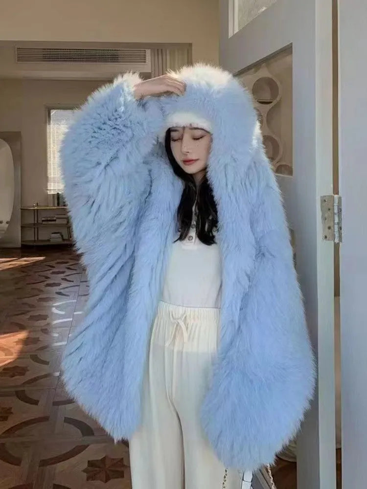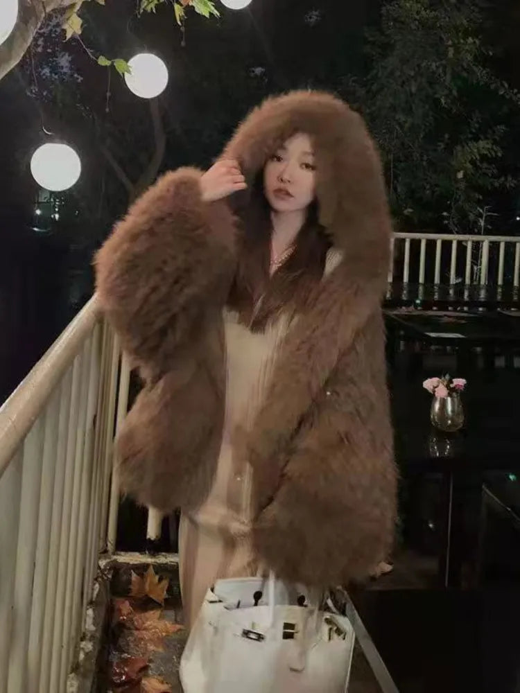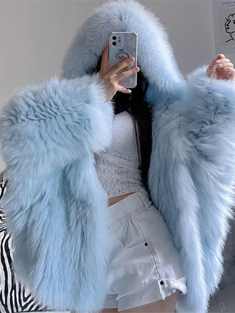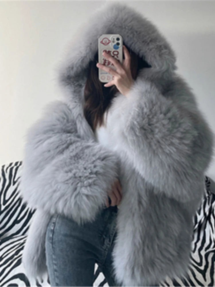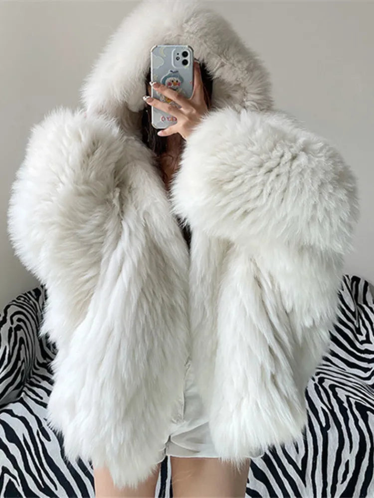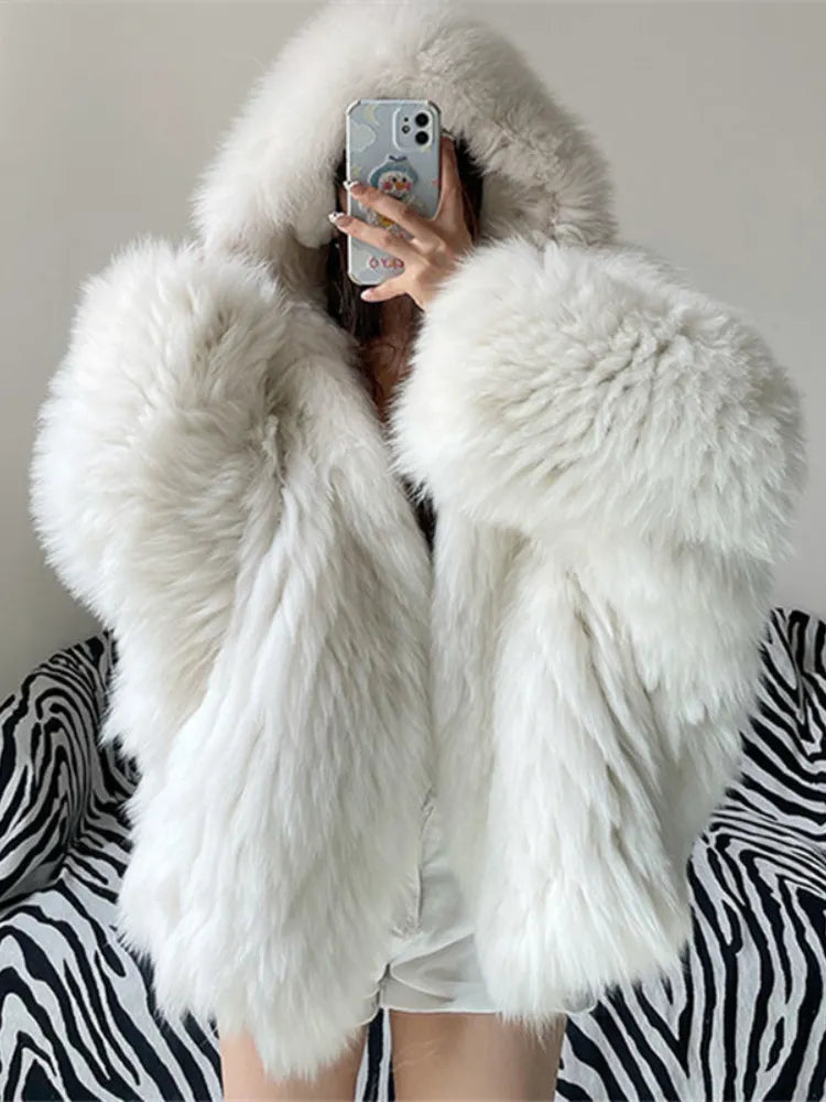 Women's Coat New In Fashion Hooded Solid Color Jacket Elegant Tops Temperament Style Winter Commuting Streetwear Fur Coat Women