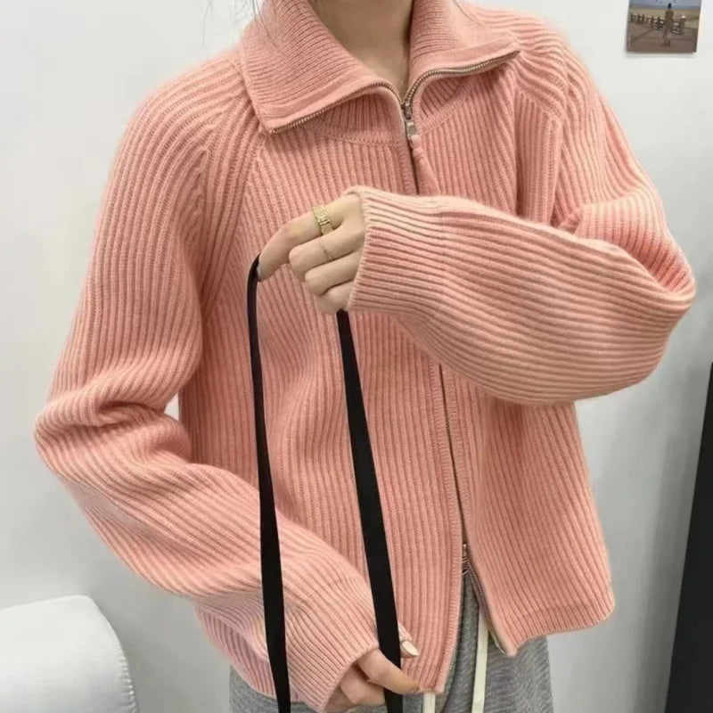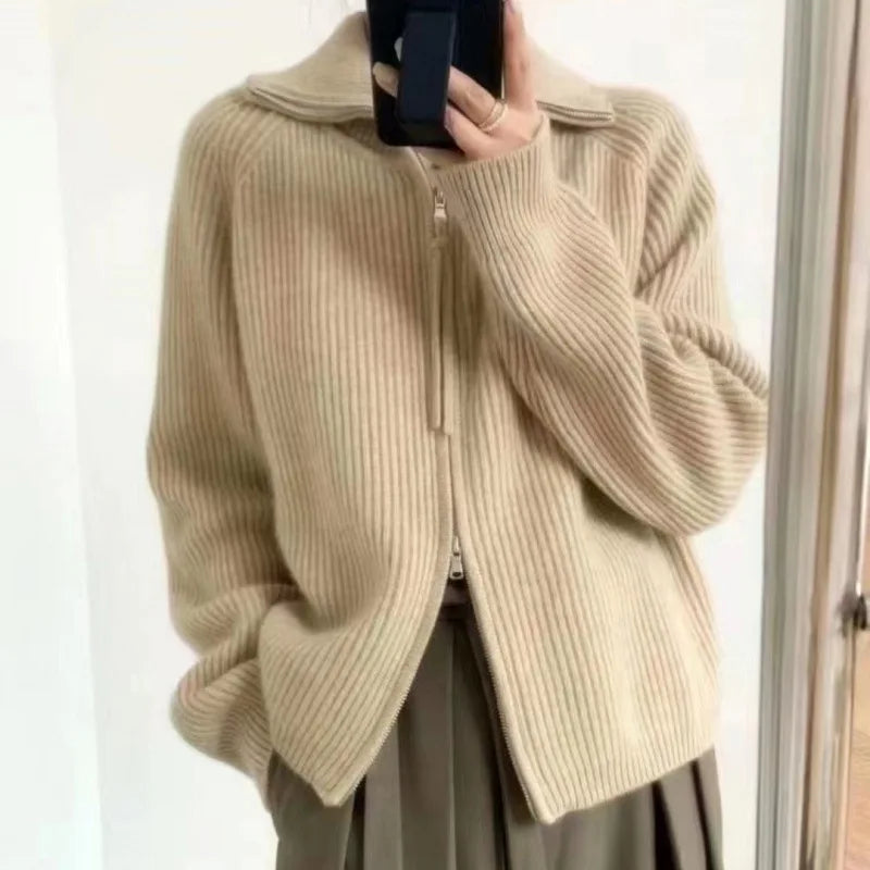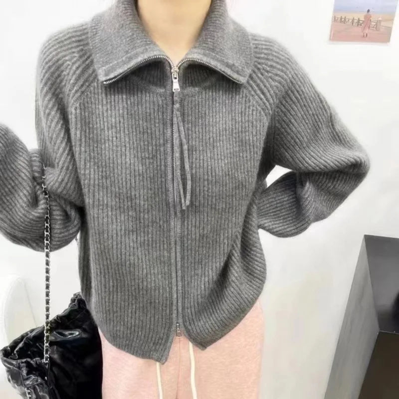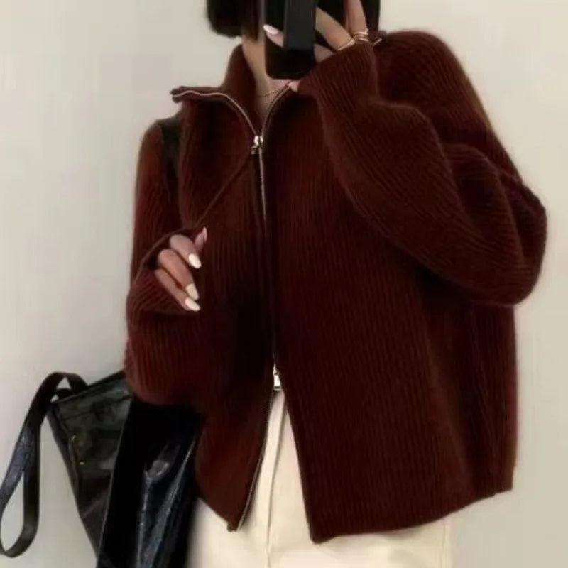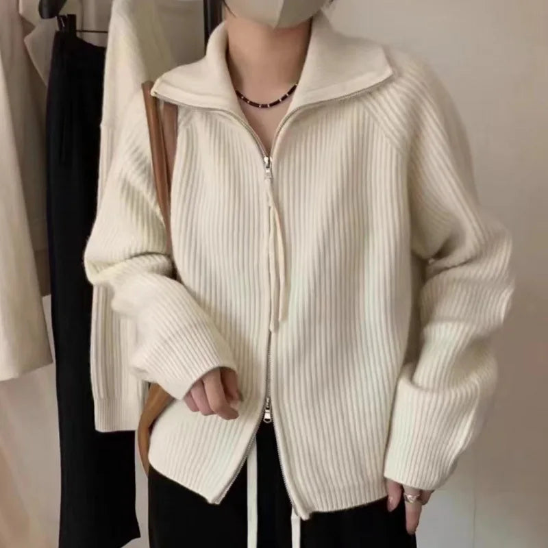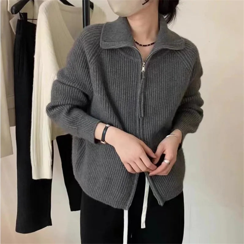 Women's Knitting Sweater Turtleneck Zipper Cardigan Casual Loose Top Thickening Jacket Long Sleeves Solid Color Unisex Tops
