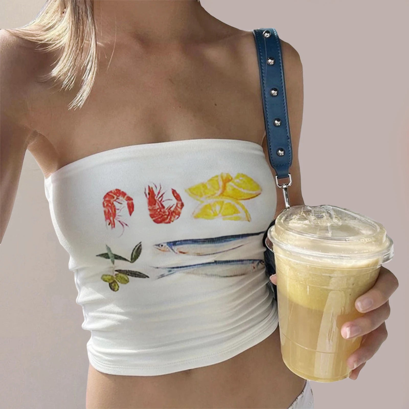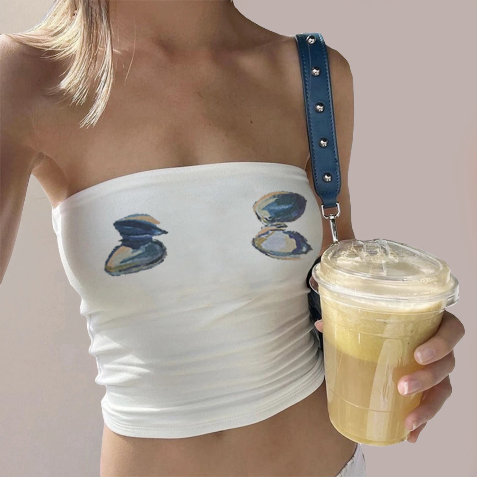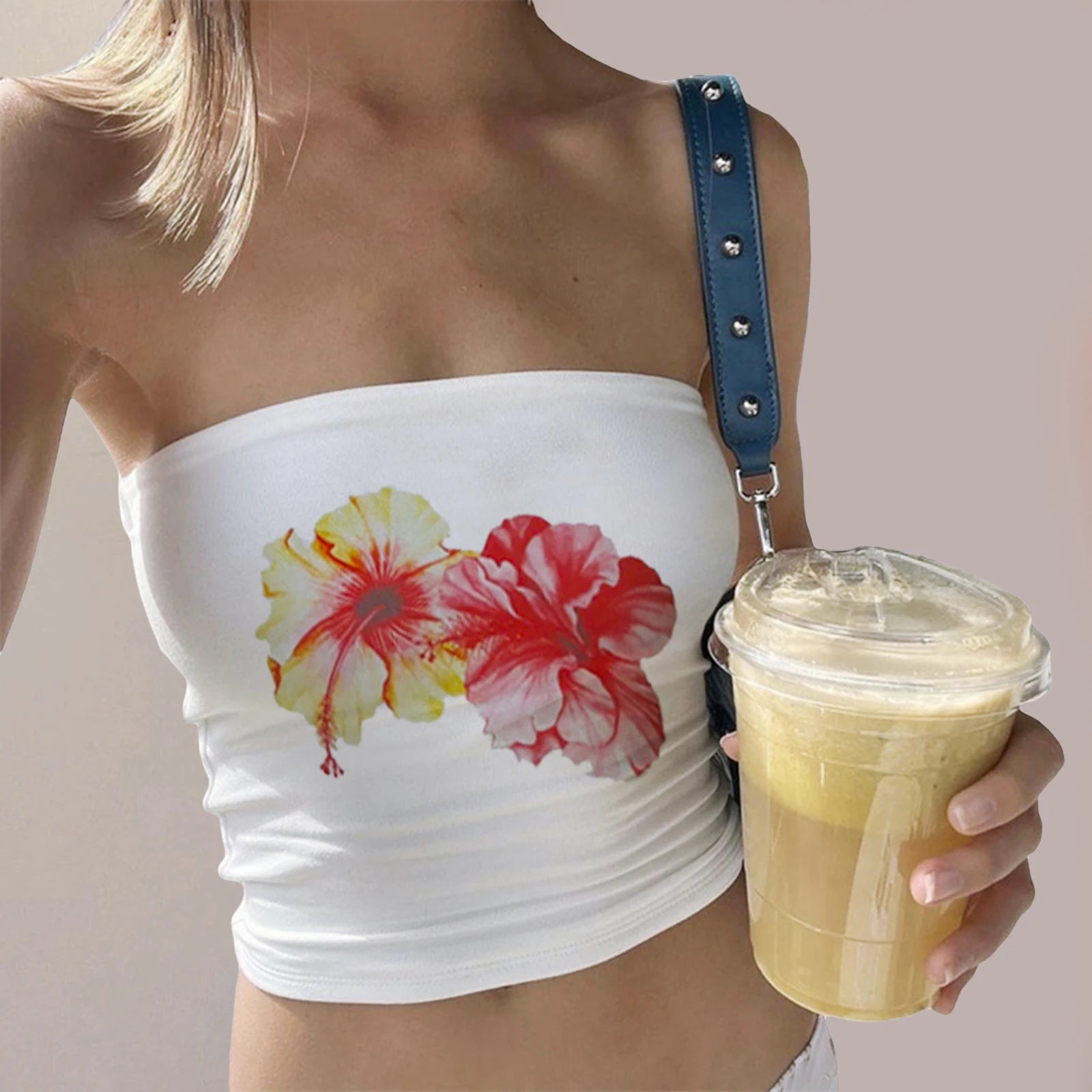 Getadme-Women's Y2k Strapless Tube Top Backless Bandeau Crop Tank Top Flroal Print Off Shoulder Cami Shirts Summer 2024 New